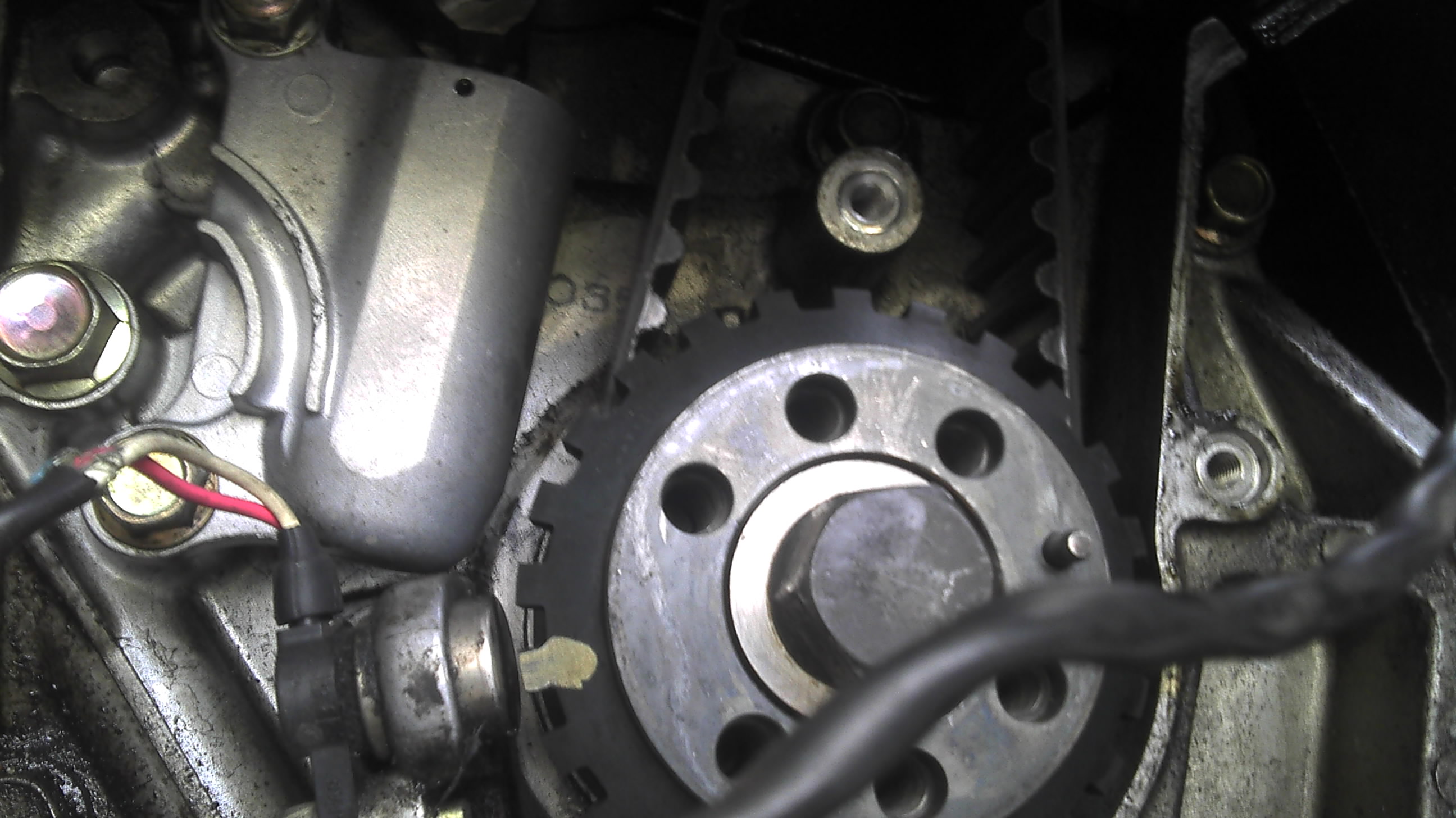 Na zdjeciu, po zdemontowaniu kola pasowego, dzwiek wlasnie wydobywa sie zza kola. Chyba ze przenosi sie z pompy wody (tak sobie wmawiam, bo z dwojga zlego lepiej zeby bylo z pompy ;))