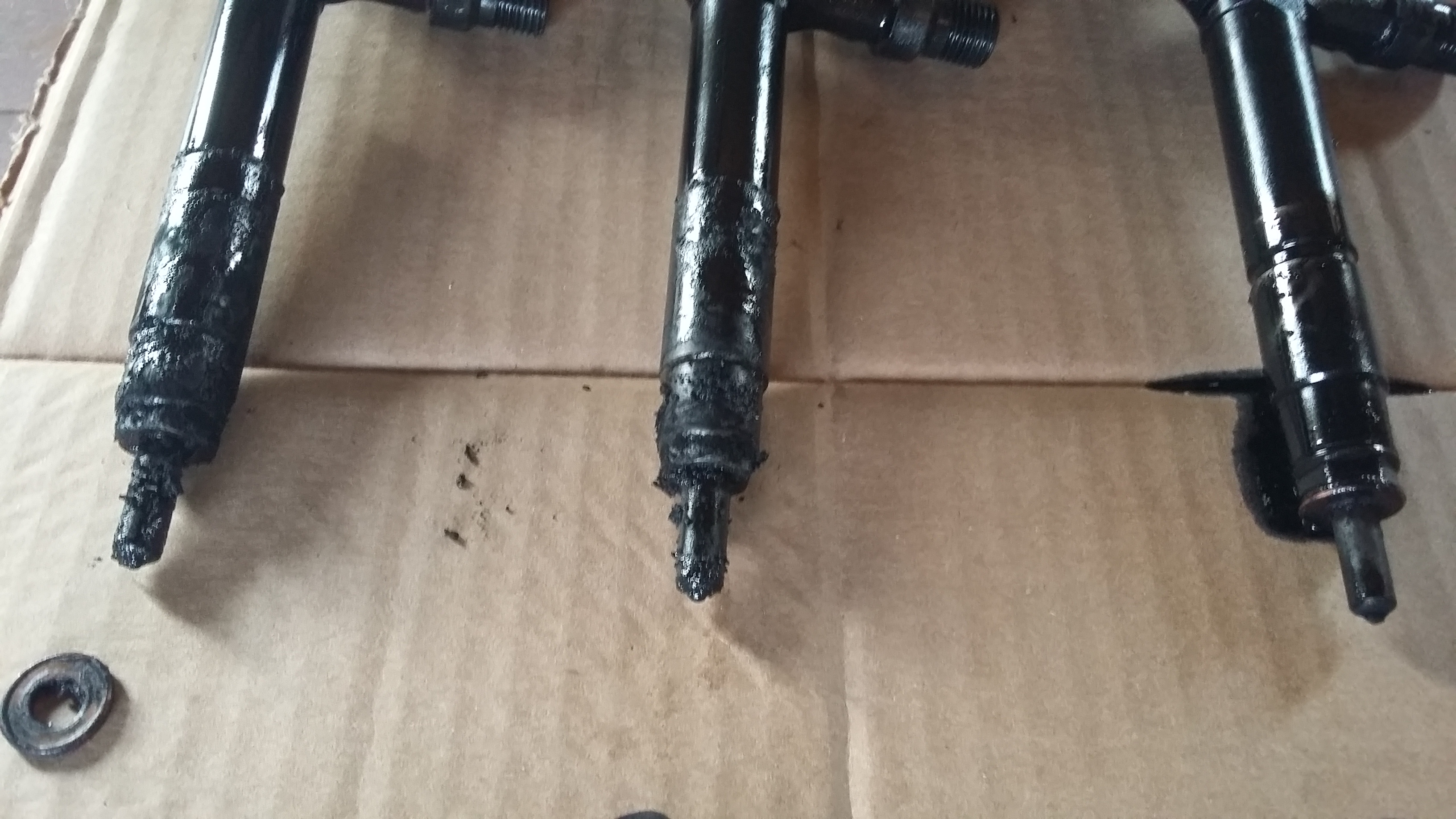 Jeśli chodzi o wtryskiwacze to tylko 3 wyszedł w 100% wolny od nagaru. Nad wyciągnięciem 4 napociłem się troszku ale nie miał wyjścia i puścił, a na 2 była jeszcze oryginalna podkładka miedziana tzw. kwiatek.