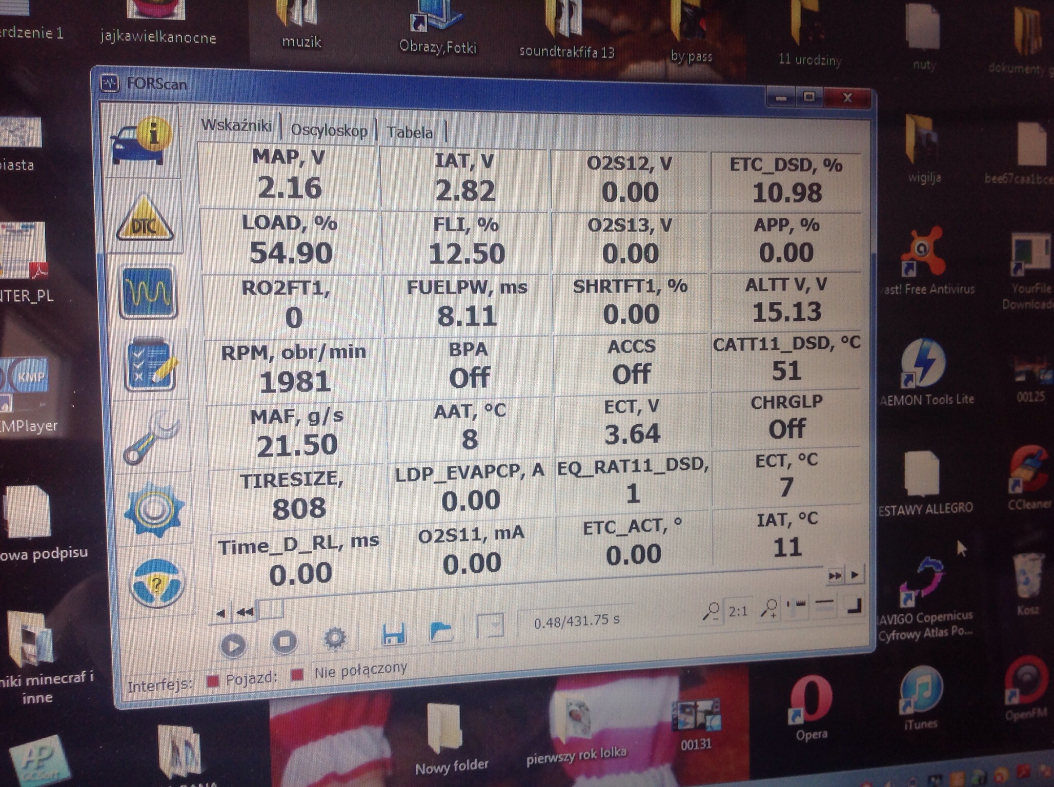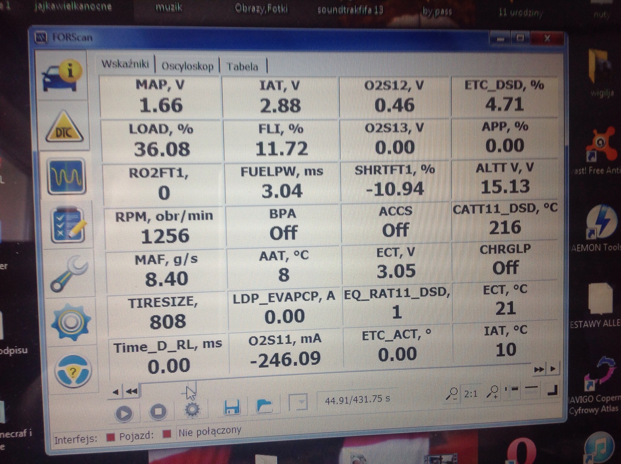 gdzie temp.silnika podniosła się zaledwie o 4 st.