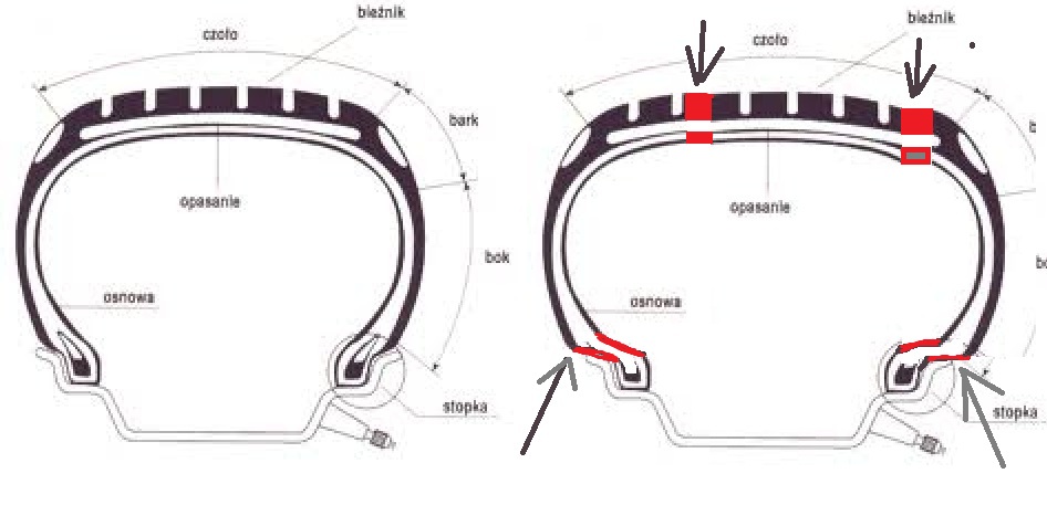 Na BMW z oponą 225/50/R17 Continental SportContact2 rantu było z 5mm!!! Chętnie bym takie kupił, ale nie chcę wydawać 2kzł na komplet opon. Co ma wpływ na rant? Tylko oznaczenie FR czy tam RFP, MFS (zwał jak zwał), czy wpływ ma szerokość opony... czy tylko model? Jak robią szerszą oponę danego modelu na taką samą felgę? Muszą chyba to uzyskiwać szerszym rantem, coś w ten deseń: