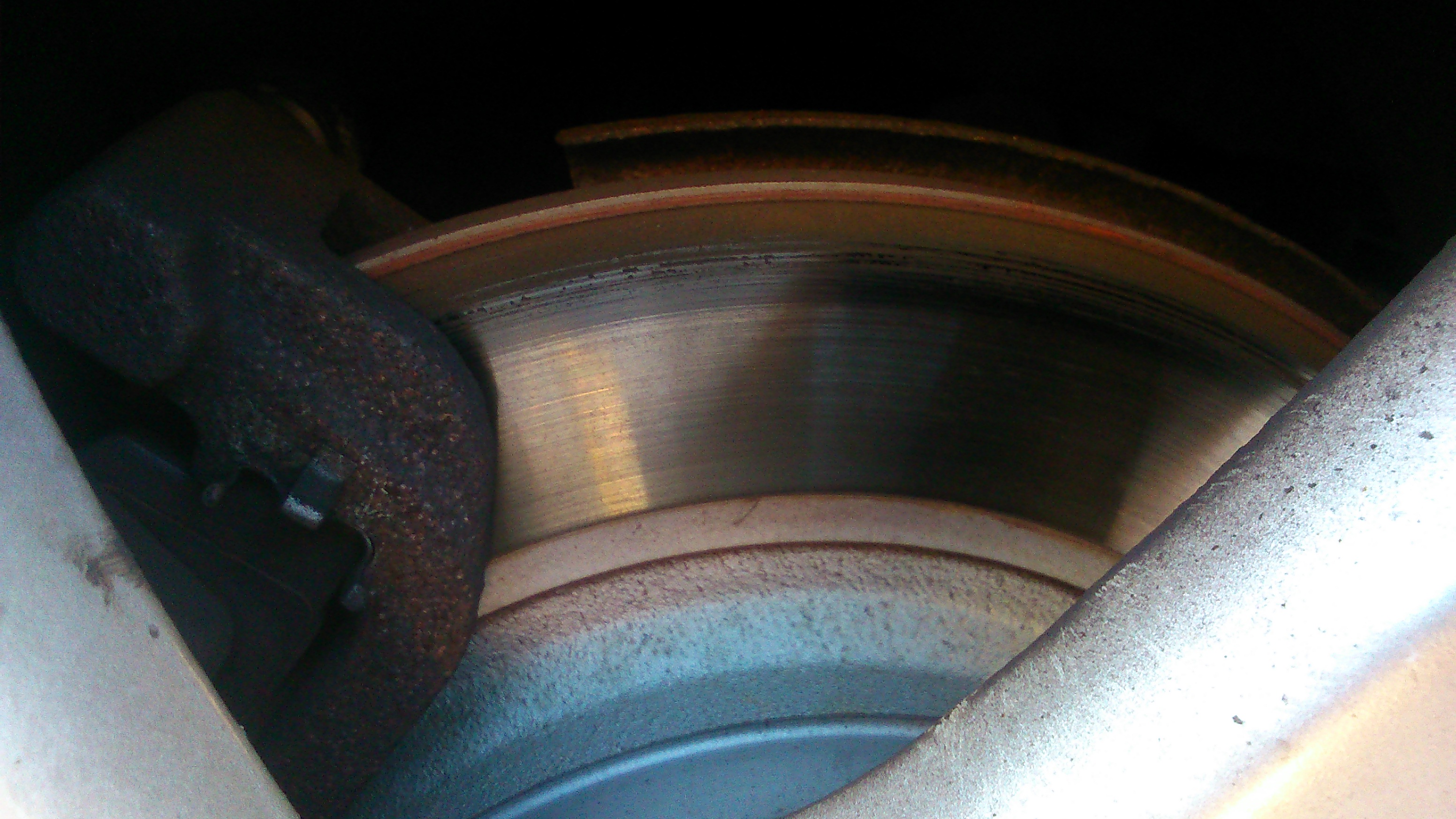 Panowie, szybciutkie pytanko-czy to wygląda normalnie? Tarcza ATE z tylnego lewego koła. Dla porównania tarcza z prawego koła jest cała metaliczna, bez tego dziwnego wąsa. Dwa miesiące temu wymieniałem klocki i tarcze i zastanawiam się, czy mechanik nie spieprzył wymiany. Dodam, że od tego momentu przejechałem ok 3000 km.
