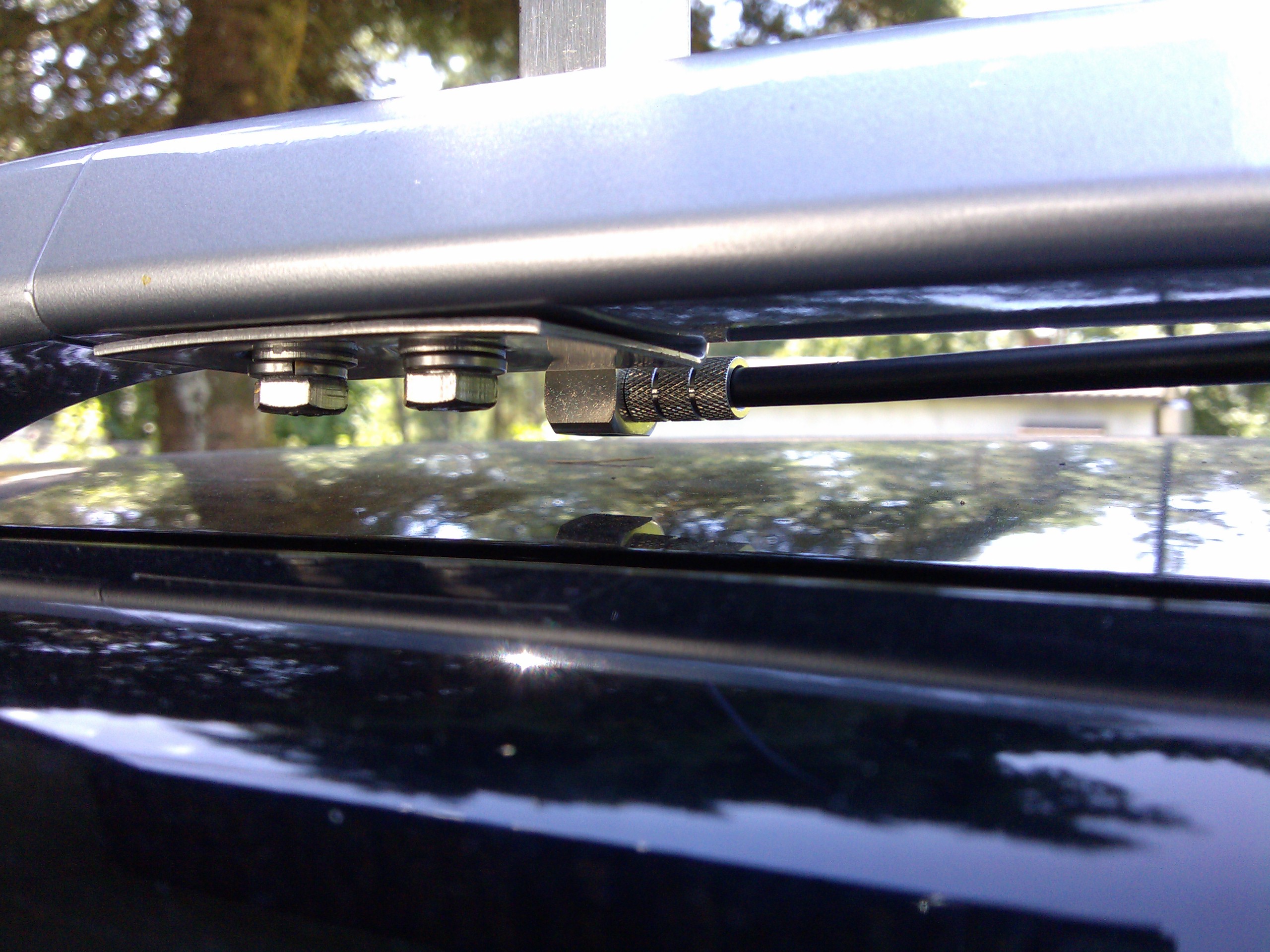 Z mocowaniem anteny też narazie mam problem, bo planowałem dorobić uchwyty pod śruby łączące reling z mocowaniami, ale niestety śruby nie chcą się odkręcić i nie miałem jak zrobić szablonu. W tygodniu poszukam jakiegoś sprytnego kluczo – śrubokręta, żeby to odkręcić (śruby są z łbem stożkowym i nacięciem PH3, a pomiędzy relingiem a dachem jest około 2cm miejsca, więc zwykły śrubokręt nie podejdzie).