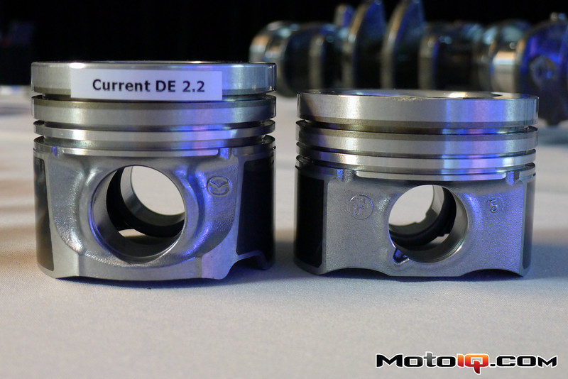 Poza obniżoną kompresją, kształtem i lekkością tłoków, podwójnym turbo, napędem rozrządu łańcuchem, w oczy rzuca się nowa kanapkowa konstrukcja (taka sama jak w benzynowym SKYACTIV-G PE). Silnik jest/będzie montowany do CX-5 i nowej "szóstki".
