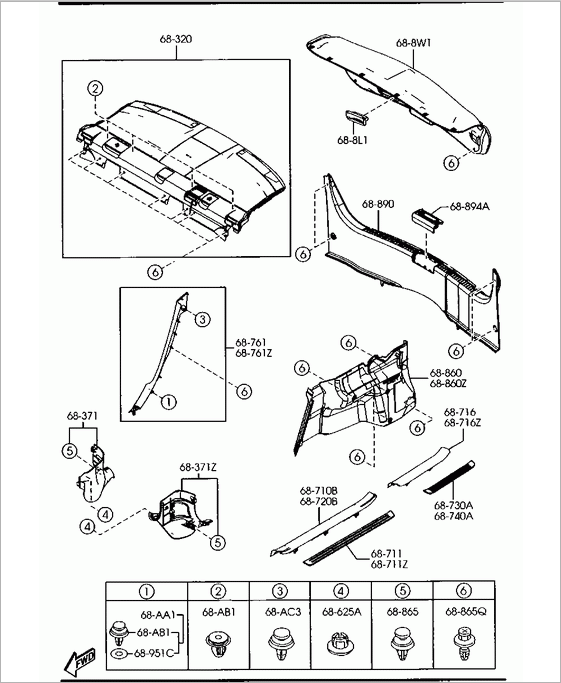 mazda 6 2009 obudowa tylnej półki