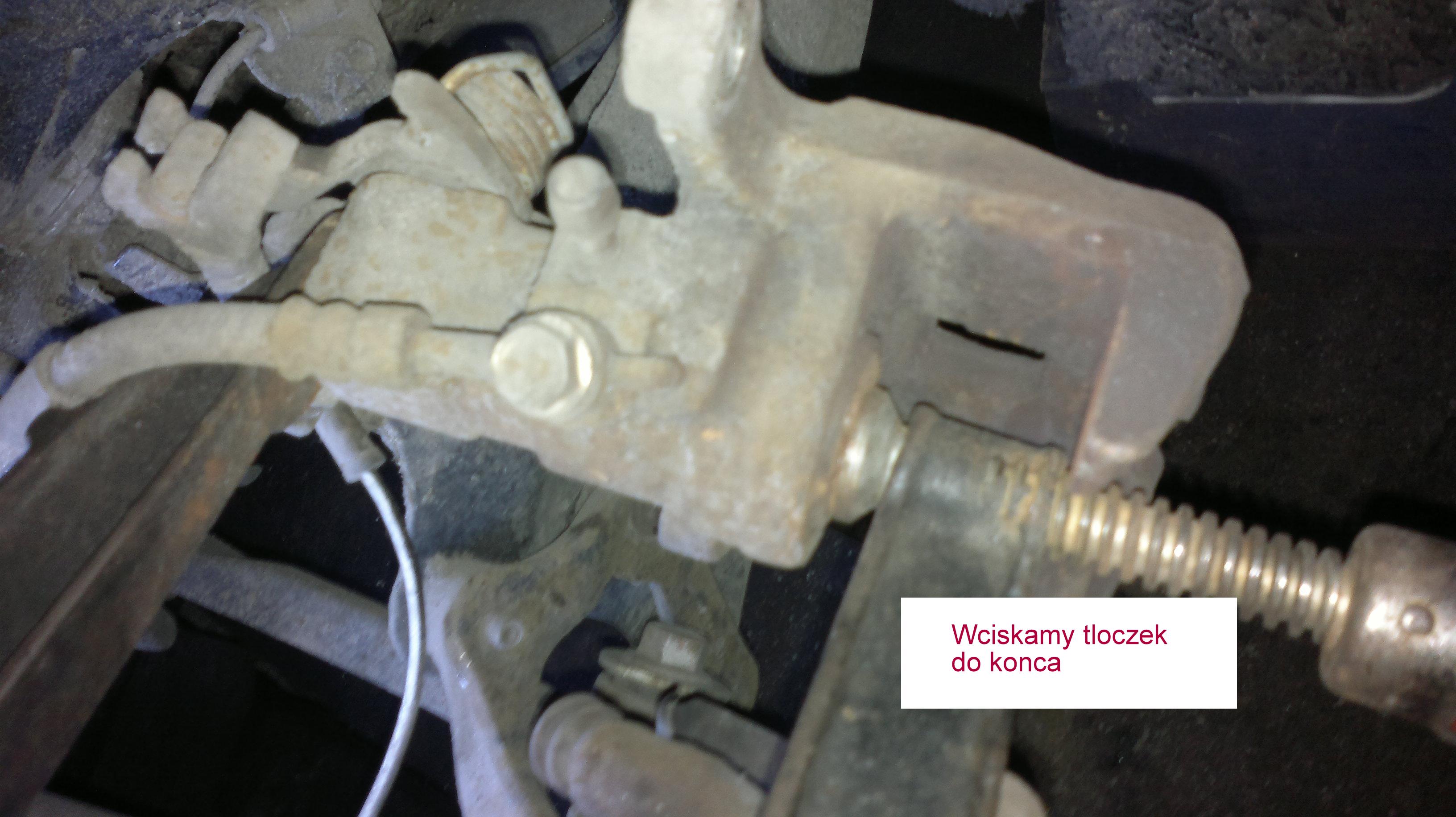 Ukazują się nam stare klocki z tego potrzebujemy blaszki które znajdują się na klockach ( przekładamy je na nowe klocki oraz drucik którego końcówki wchodzą w klocki. Aby wyjąć klocek pomiędzy klocek a tarczę wkładamy wkrętak.