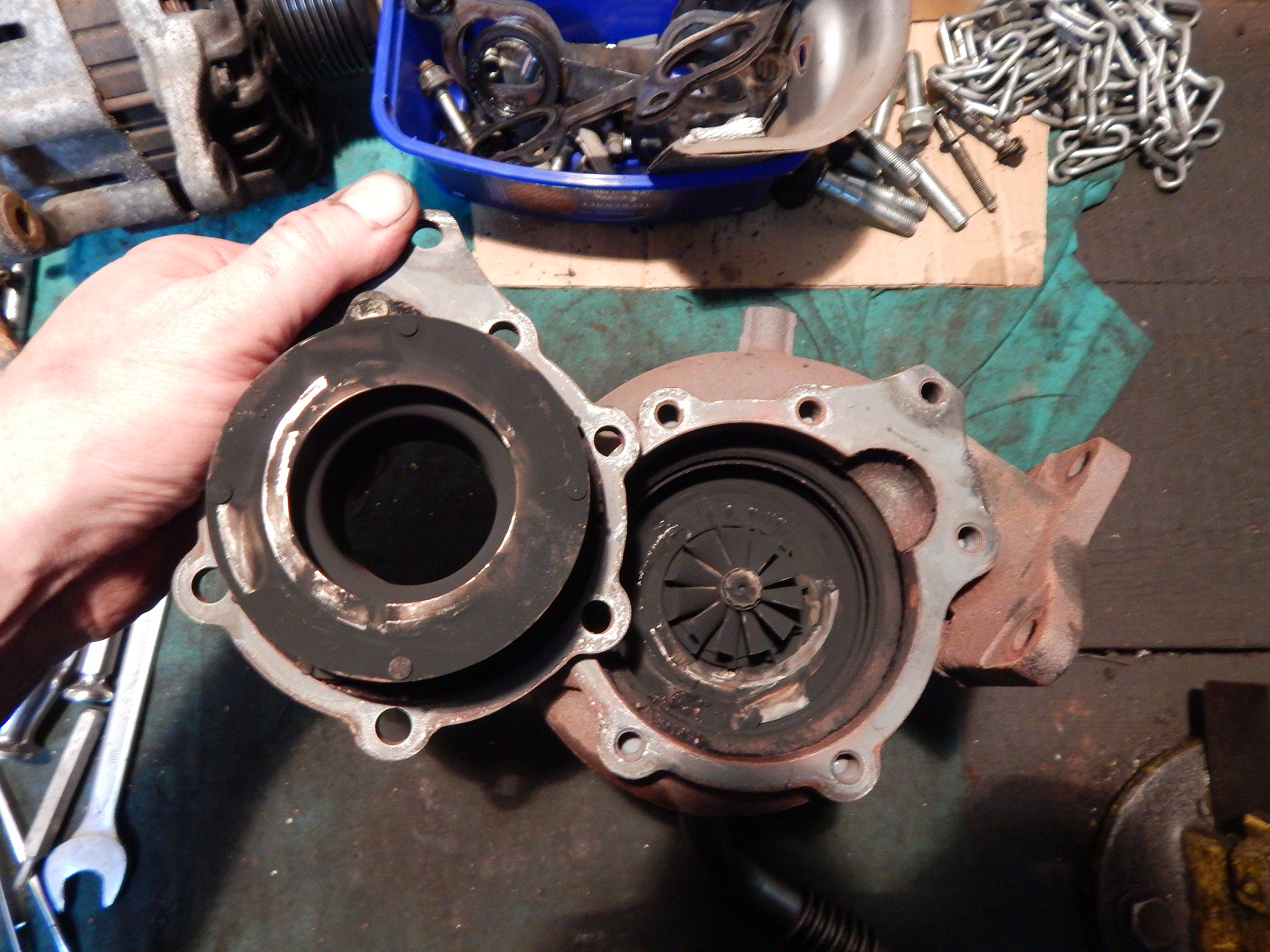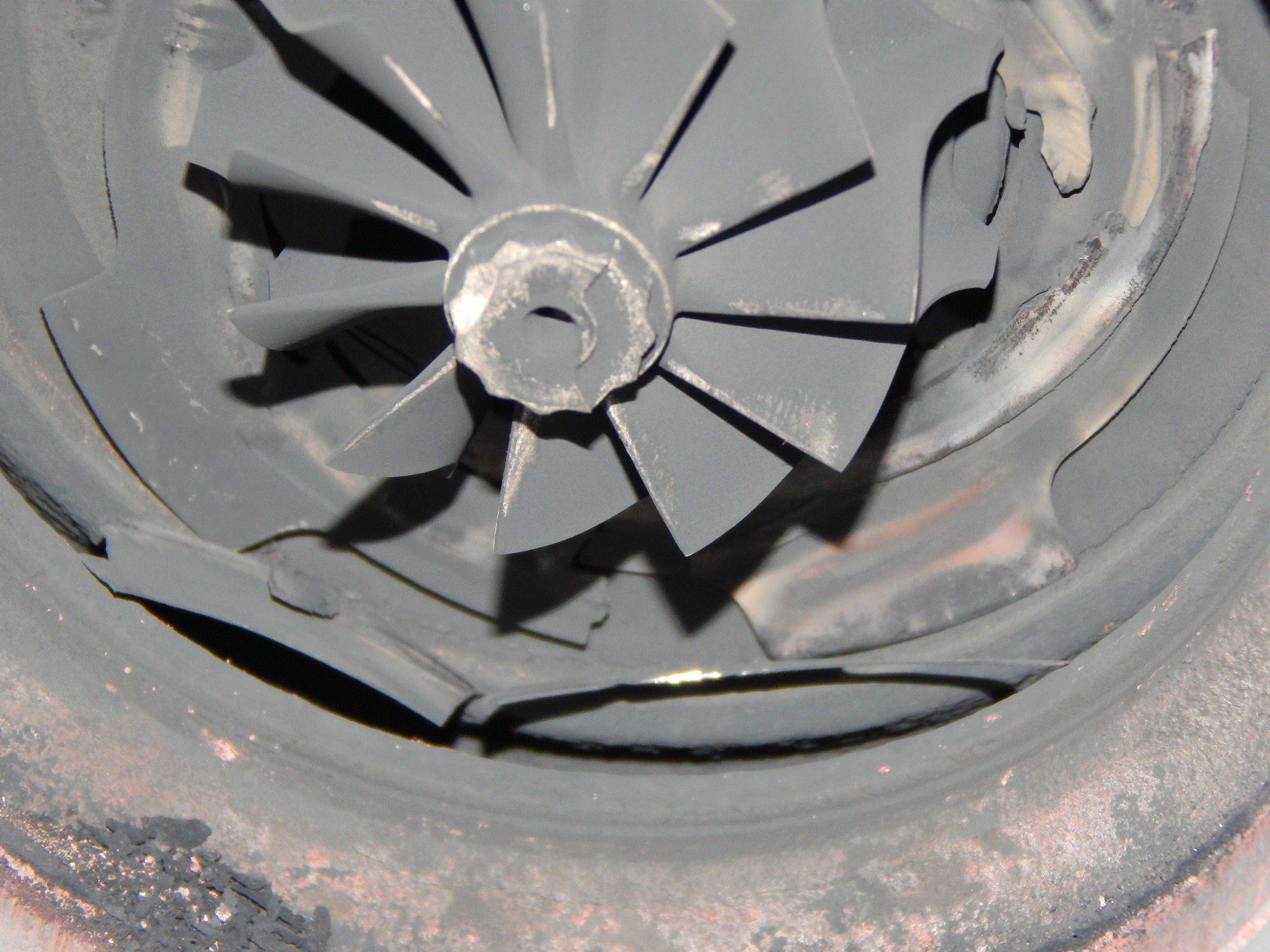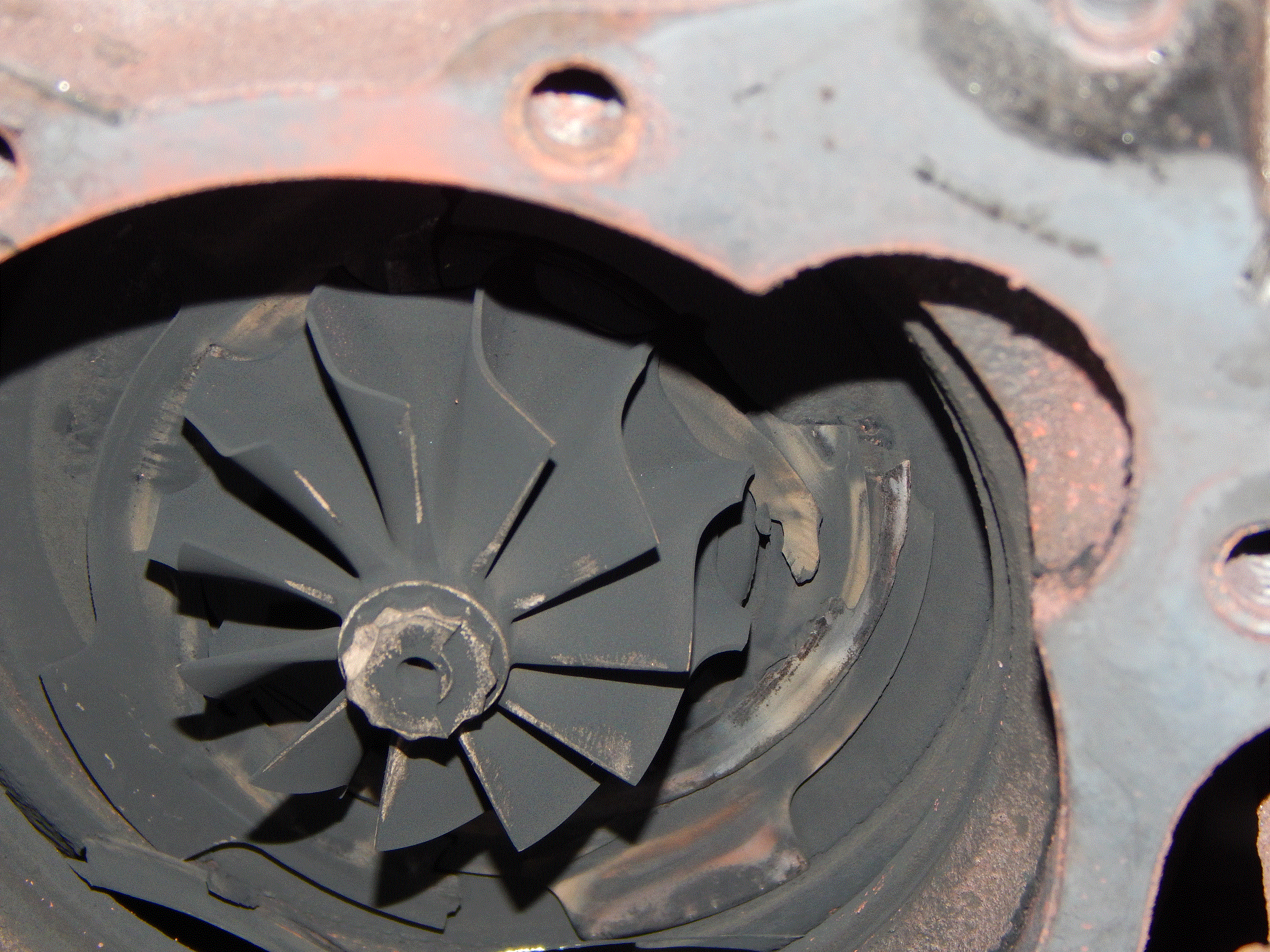 A oto obraz tego co znalazłem w turbinie po zdemontowaniu kierownic.