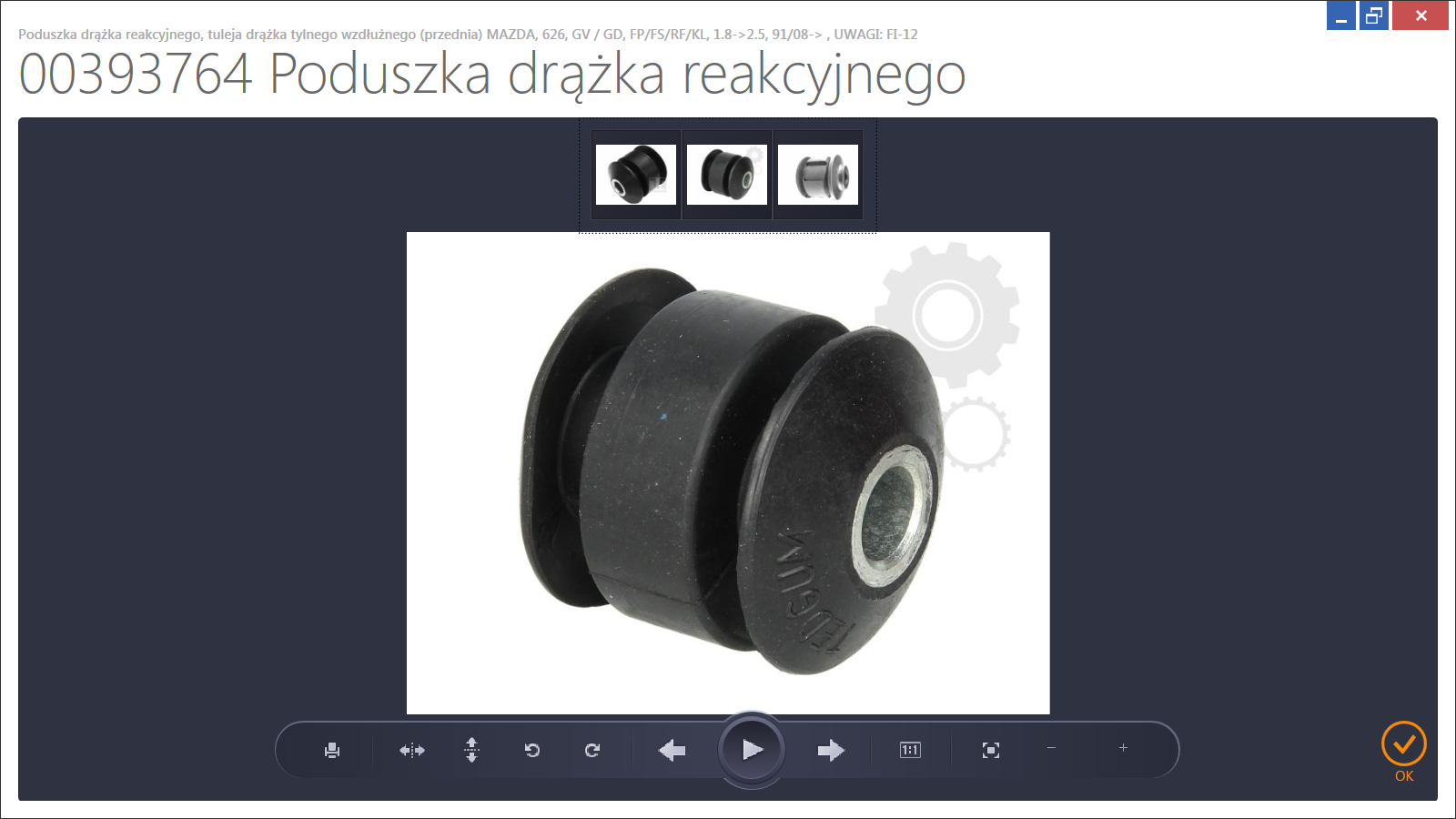 tuleja drążka tylnego wzdłużnego (przednia) MAZDA, 626, GV / GD, FP/FS/RF/KL, 1.8->2.5, 91/08-> , UWAGI: FI-12 nr.kat. 00393764