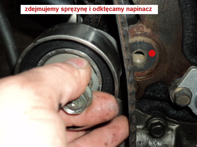 14.Odkręcamy napinacz i rolke prowadzącą