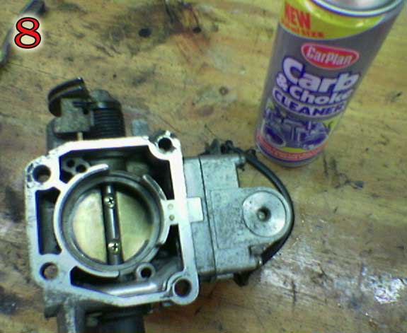 Właśnie zakończyłem czyszczenie przepustnicy. Najbardziej umęczył mnie dolny wężyk od płynu (katastrofa), ale wszystko ładnie wymyłem i poskładałem w końcu jak należy. Niestety nie dobrałem się do silniczka krokowego, ponieważ nie mogłem odkręcić jednej śrubki krzyżakowej oraz nie miałem "Torxa".