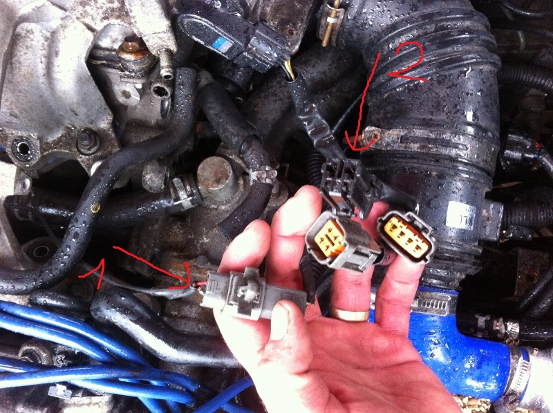 Pierwszy obrazek 1 kostka to czujnik stuku 2 regulator cisnienia paliwa(Kostka wchodzi w solenoid taki jak od Vrisów,jeden wezyk idzie z kroćca na dolocie do solenoidu a 2 wezyk z kroćca regulatora cisnienia na listwie wtryskow na solenoid)gdzie masz wtryski i czemu odpięty przepływomierz?Sonda narazie sie nie przejmuj bo ona nie działa na zimnym silniku musi osiagnac temp.pracy.na 2 obrazku to chyba od gazu przewody bo ja chyba nie mam takich.Co do wtrysów to w 2 kostkach masz po jednym grubszym przewodzie jest to masa i 3 cienszych na 3 wtryski.Wlaczasz zapłon jak zwierasz te fp z gnd?