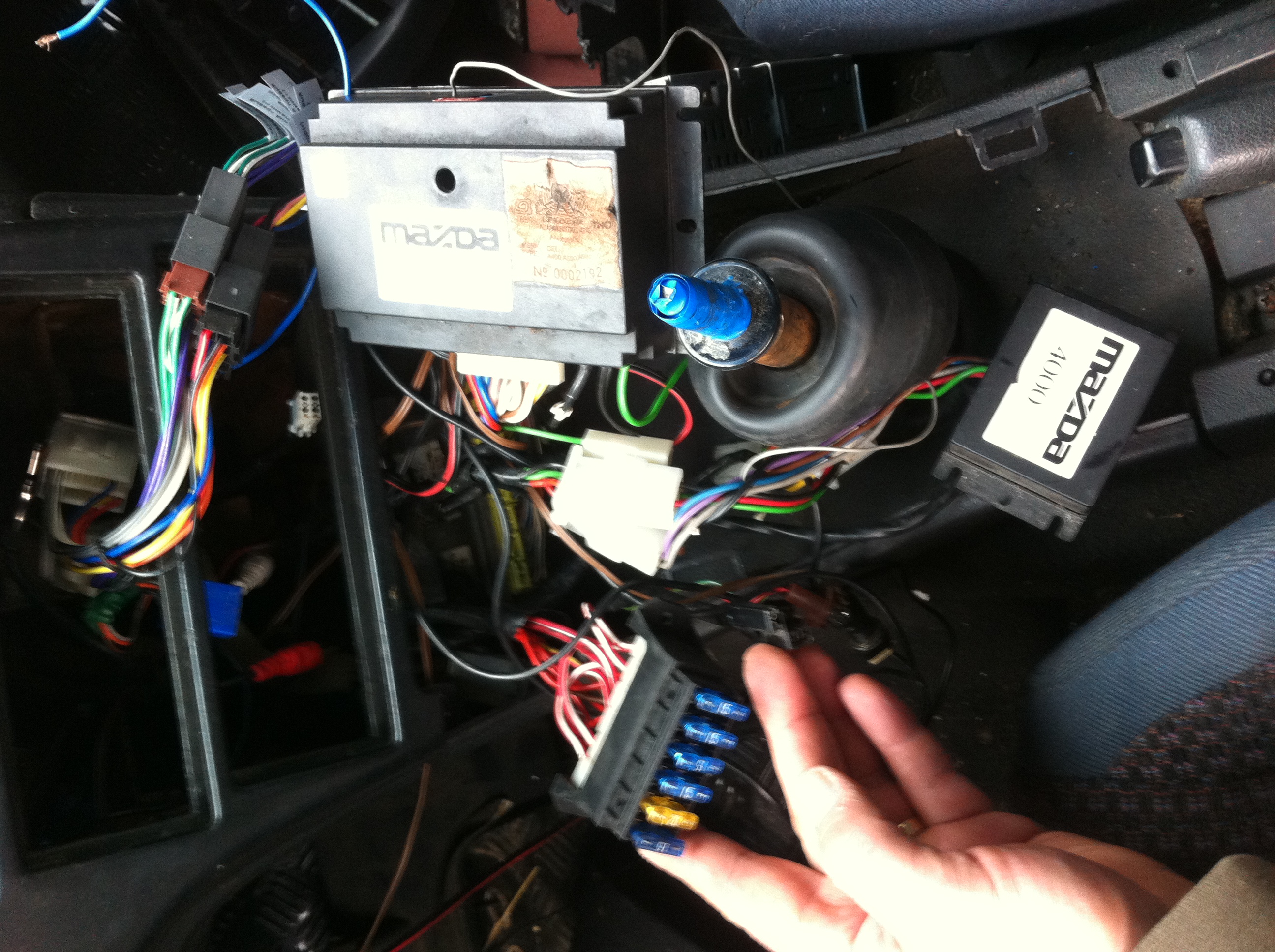 rozbierajac pol samochodu znalazlem dziwne pudelko opisane "mazda 2096" do tego podla idzie przewod z przyciskiem zainstelowany w kierownicy ktory wisi rozebrany po zmianie kierownicy i cos mi mowi ze to alarm przynajmiej takie opis zanlazlem na belgijskim forum