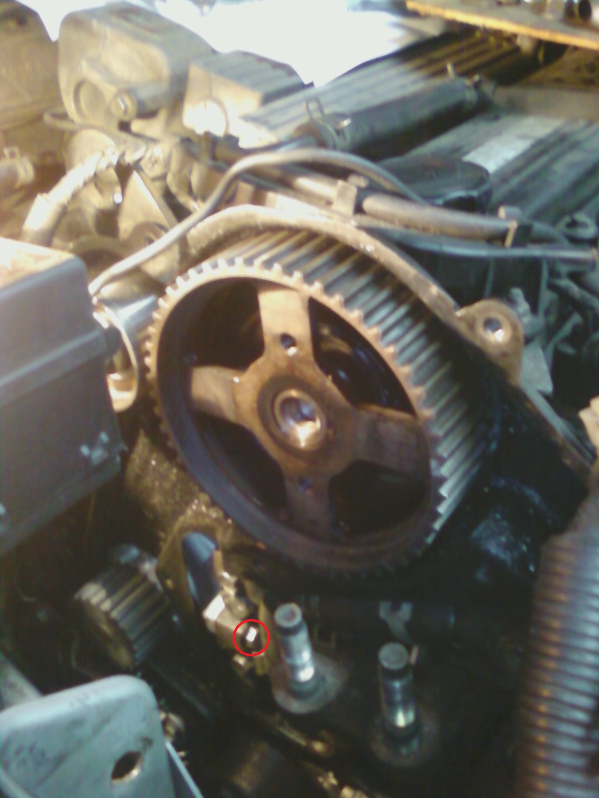 Stanolem na etapie szukania tych śrub.Jedną widać na dole pompy to jakis trop jest.Zeby odkręcic kolo pasowe na wale to wystarczy odkrecic ta srube na klucz22 czy tez te na imbusy ,odrazu bym zmienil pasek rozrzadu.co do pompy to leje sie między pompą a blokiem na zapalonym silniku to lało sie jak ze strzykawki.