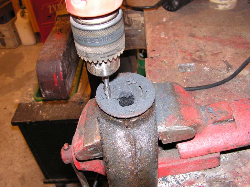 Wiertarka, wiertło nr np 8 i do dzieła. W gumie nawiercam otwory, jeden obok drugiego, najbliżej jak się da i potem kilka ruchów na boki wiertarką w celu wycięcia gumy dookoła ze stalowej tulei.