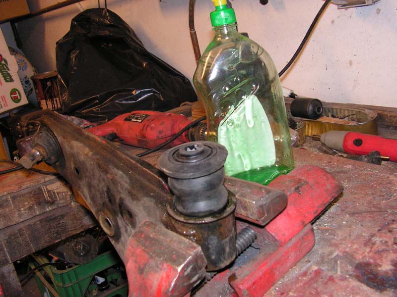 teraz bierzemy się za drugą. Tu troszkę kombinacji ze względu na kołnierz gumowy, który jest sporo większy od gniazda wahacza
