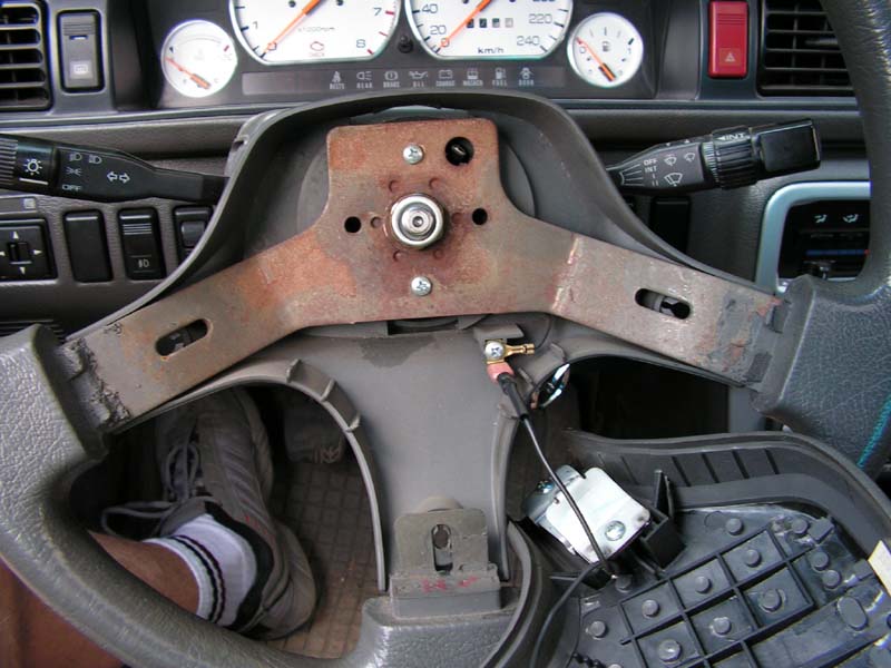 Zaczynamy od ustawienia kierownicy w pozycji właściwej dla jazdy na wprost co by potem hecy nie była hihi i ją demontujemy, bo włączniki są za nią.