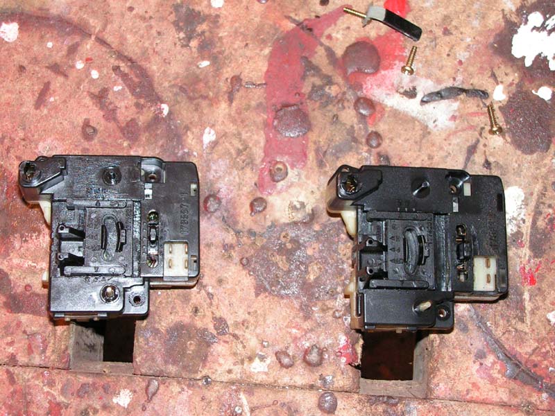 O i tu już widać fizyczne zużycie moich wyłączników. Rysy te powodowały, że bolczyki stykowe samoczynnie potrafiły sobie przeskakiwać w niepożądana pozycje w najmniej odpowiednim momencie.