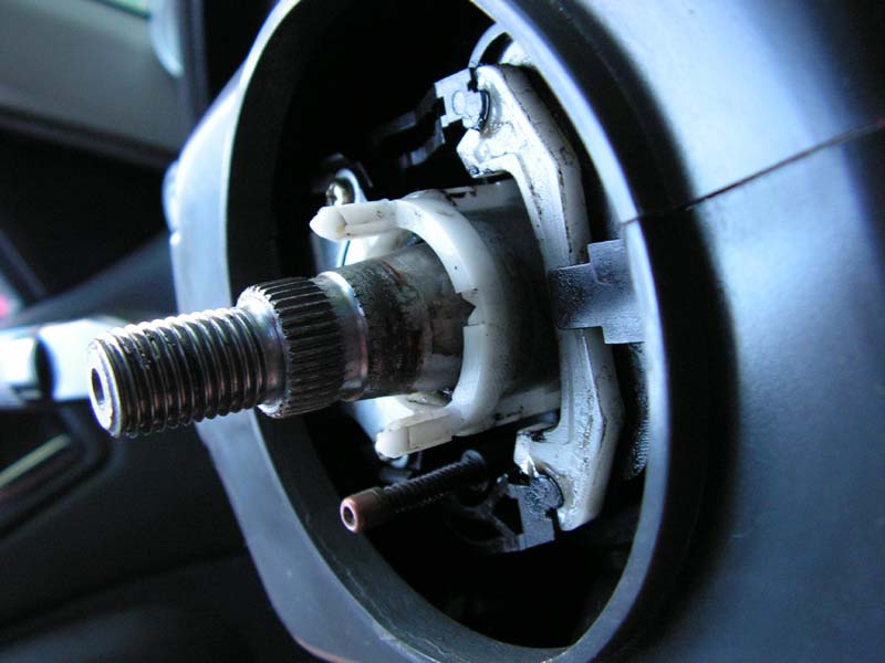 trzeba to tak ustawić aby pasowało – to jest wyłącznik kierunkowskazów. Jak nie trafią na siebie to kierownica nie wejdzie na wieloklin, a jak bardzo będziemy chcieli ją tam mimo wszystko zasadzić, to automat mamy z głowy hyhy.