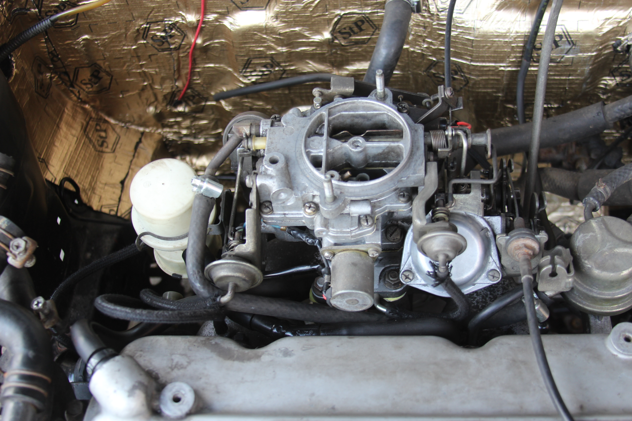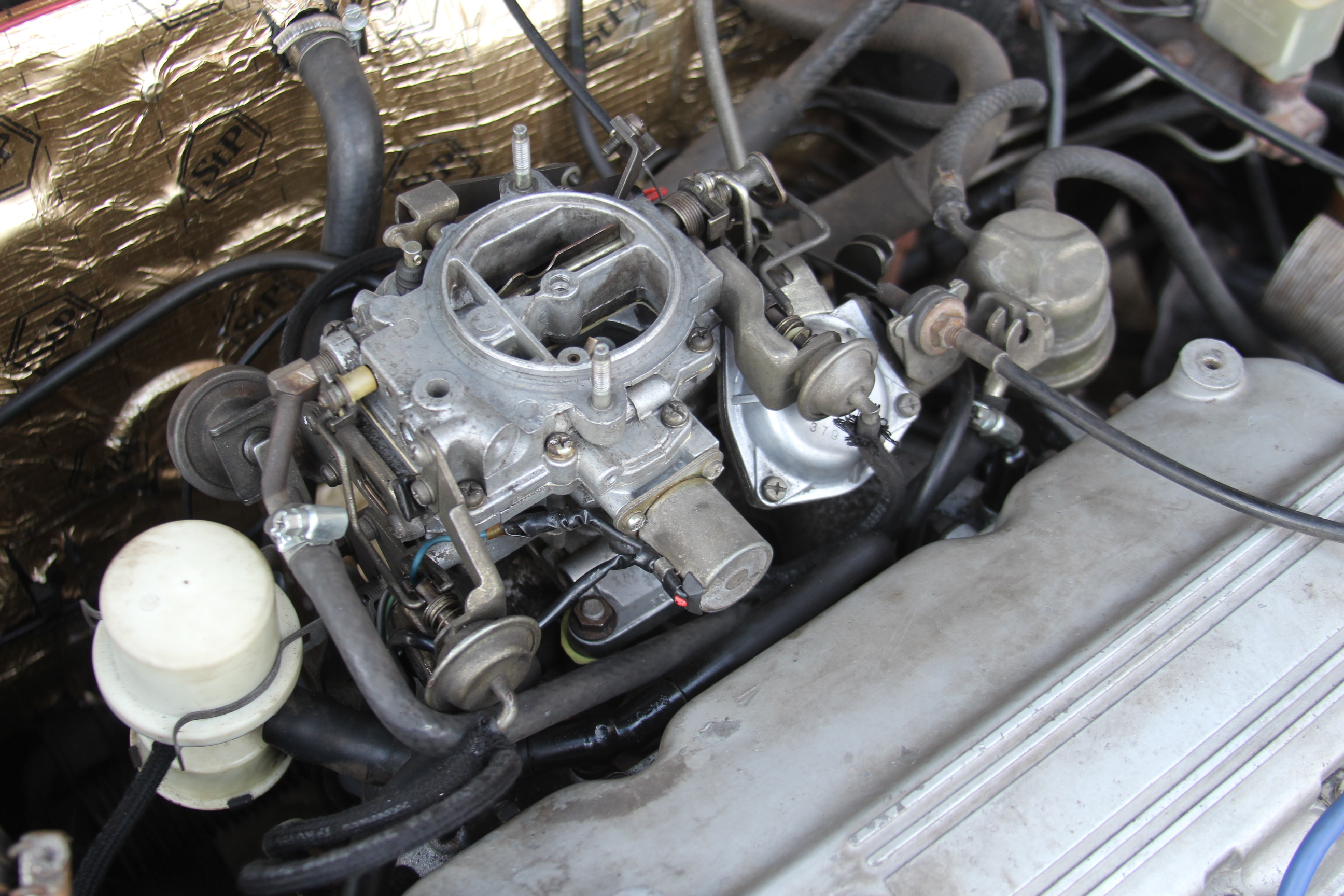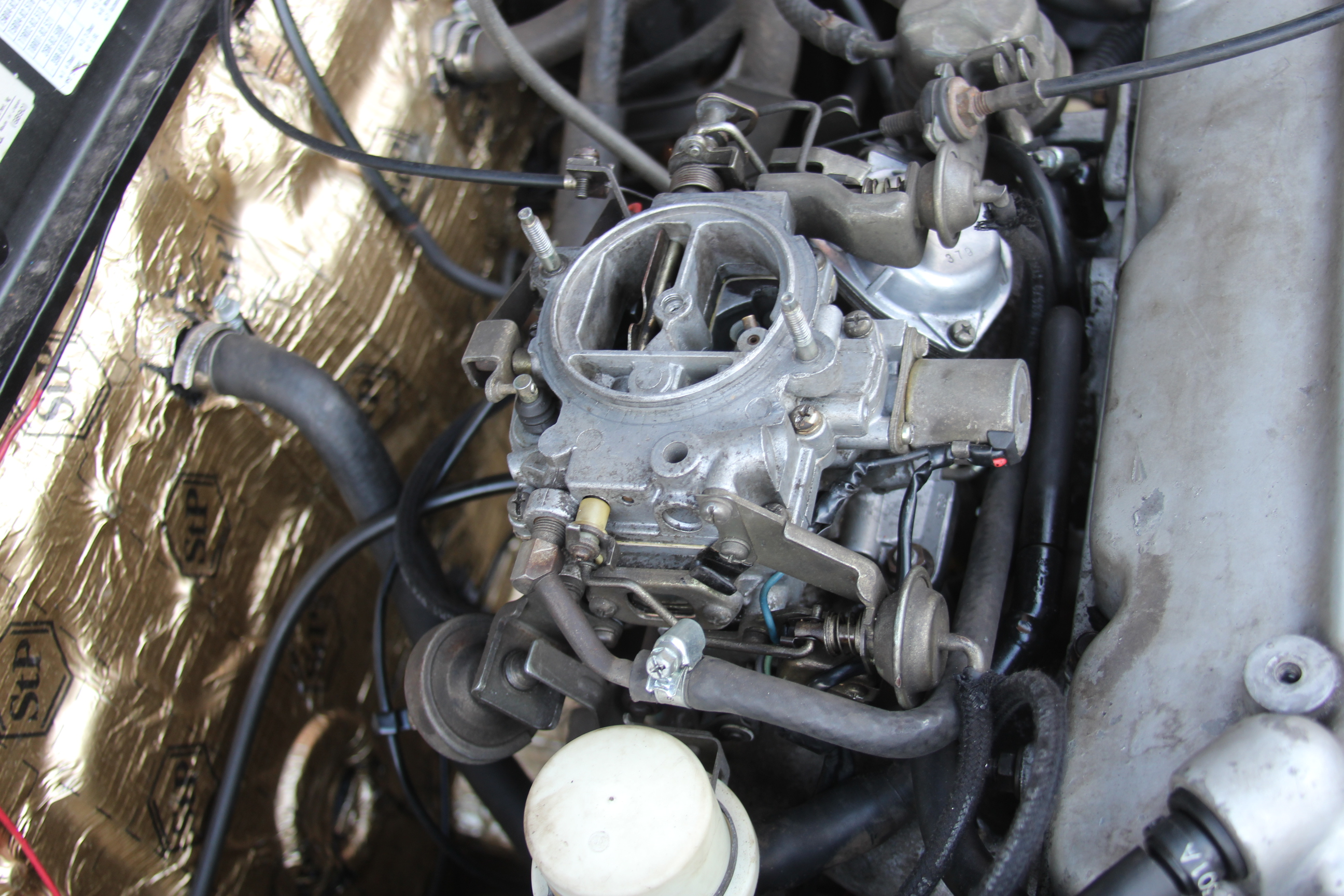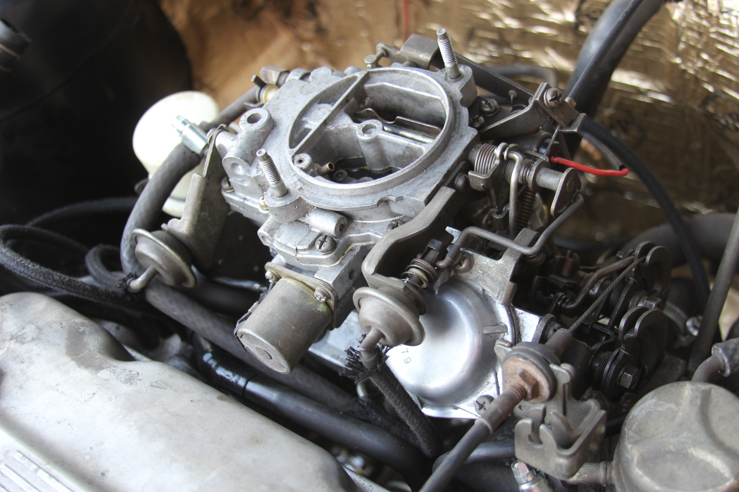 Wężyki gaźnika: tył na patelnię, bok na rozdzielacz, grzybek na podszybie – zawór 'solenoid'.