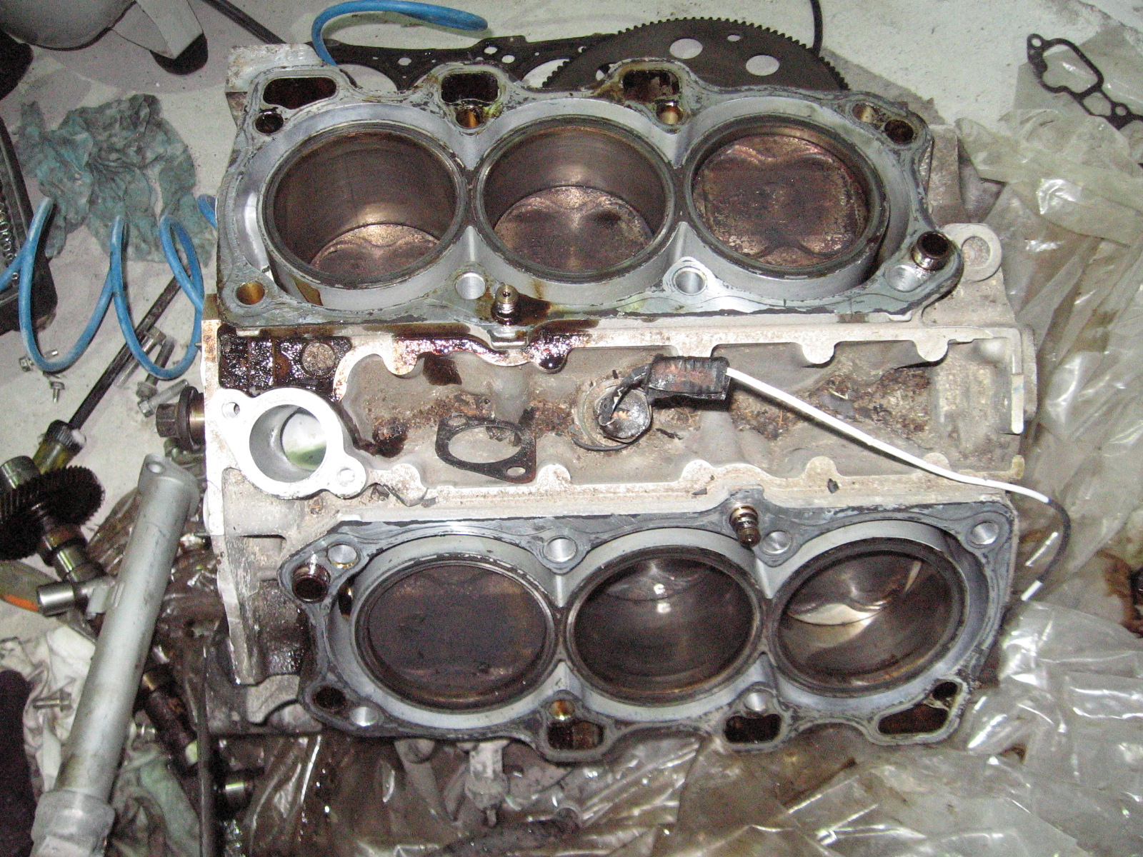 Na zdjęciu gdzie masz cały silnik przewód do czujnika spalania stukowego jest biały i idzie między głowicami. Na drugim zdjęciu widać sam czujnik.