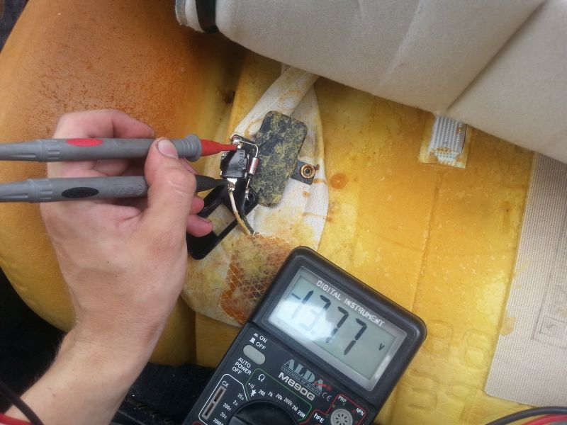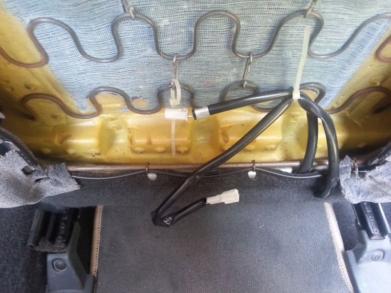 Ta wtyczka wyżej prowadzi do maty oparcia. Mierzymy jej opór. Jeśli przejścia nie ma to nie trzeba rozbebeszać dołu siedzenia.
