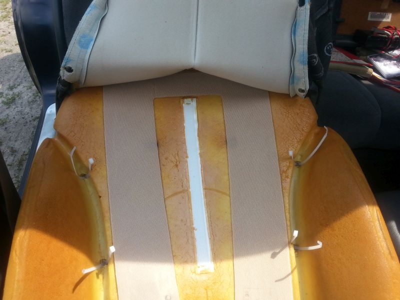 Oryginalnie tapicerka trzyma się na takich kółeczkach z drutu. Ja wyciąłem je cęgani di drutu i zastąpiłem zipami.