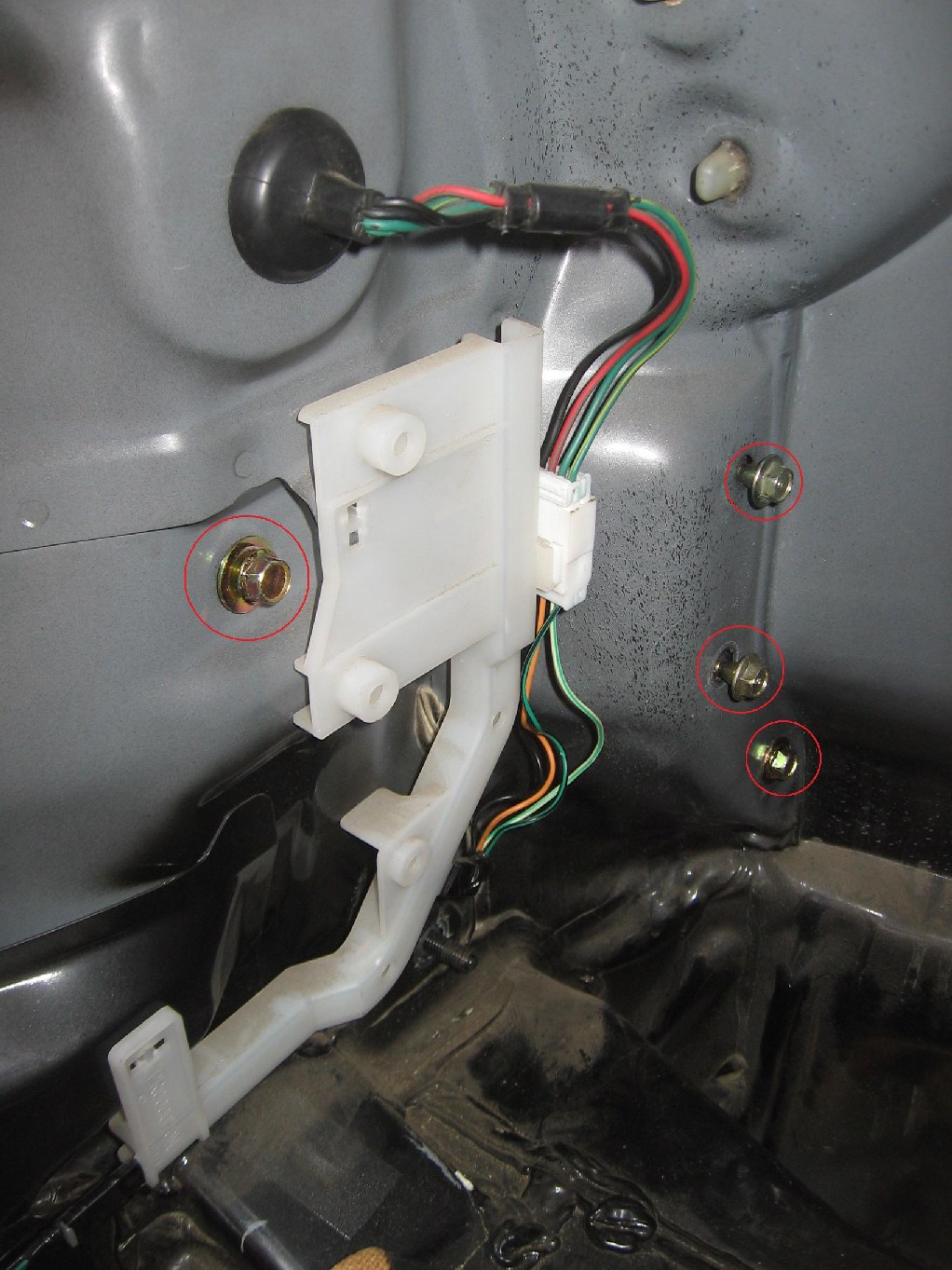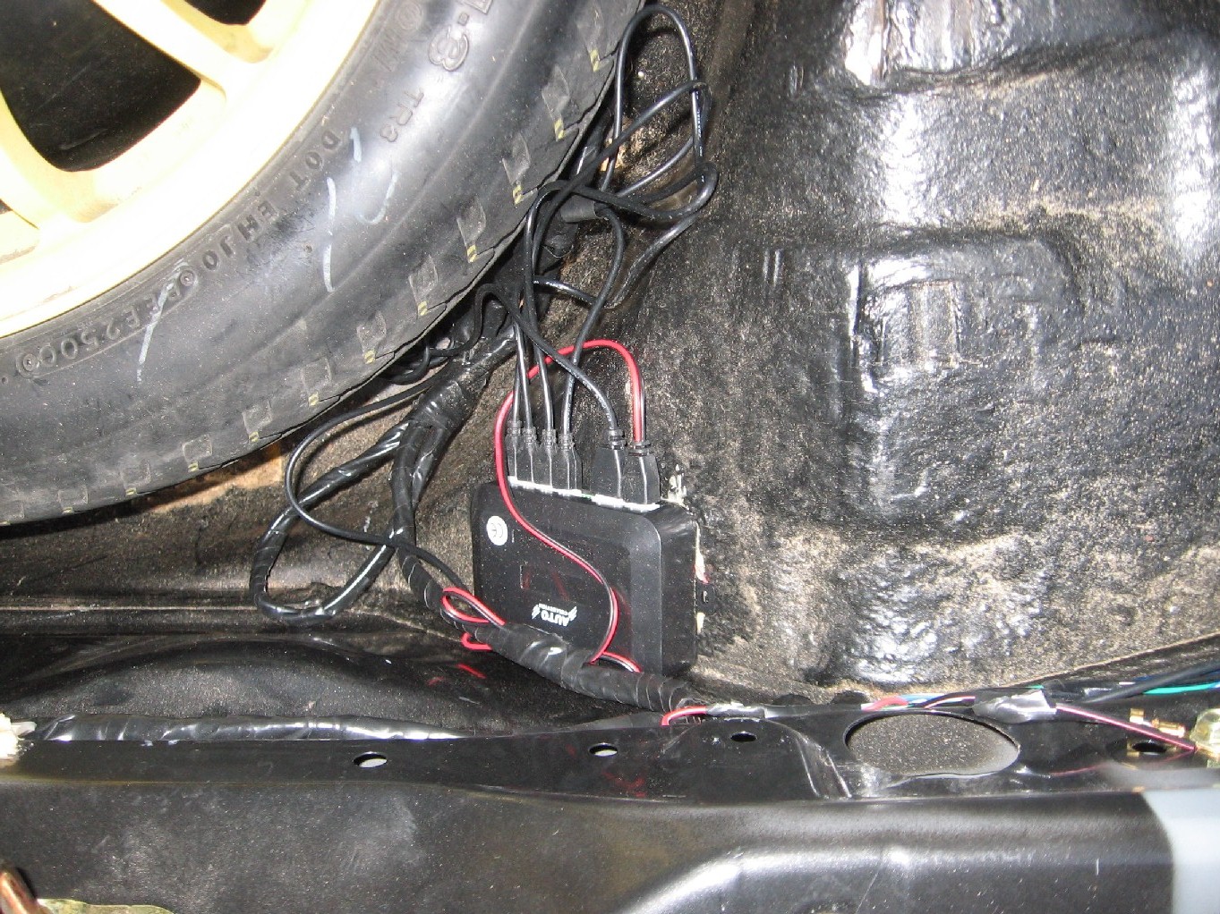 - wszystkie przewody sprowadziłem do jednego miejsca co opisałem wyżej i wszystko umieściłem obok koła zapasowego wraz z centralką (jest tam taki fajny skos, który akurat się przydał do umieszczenia tam całości (tez na klej bo powierzchnia jest tam nierówna)