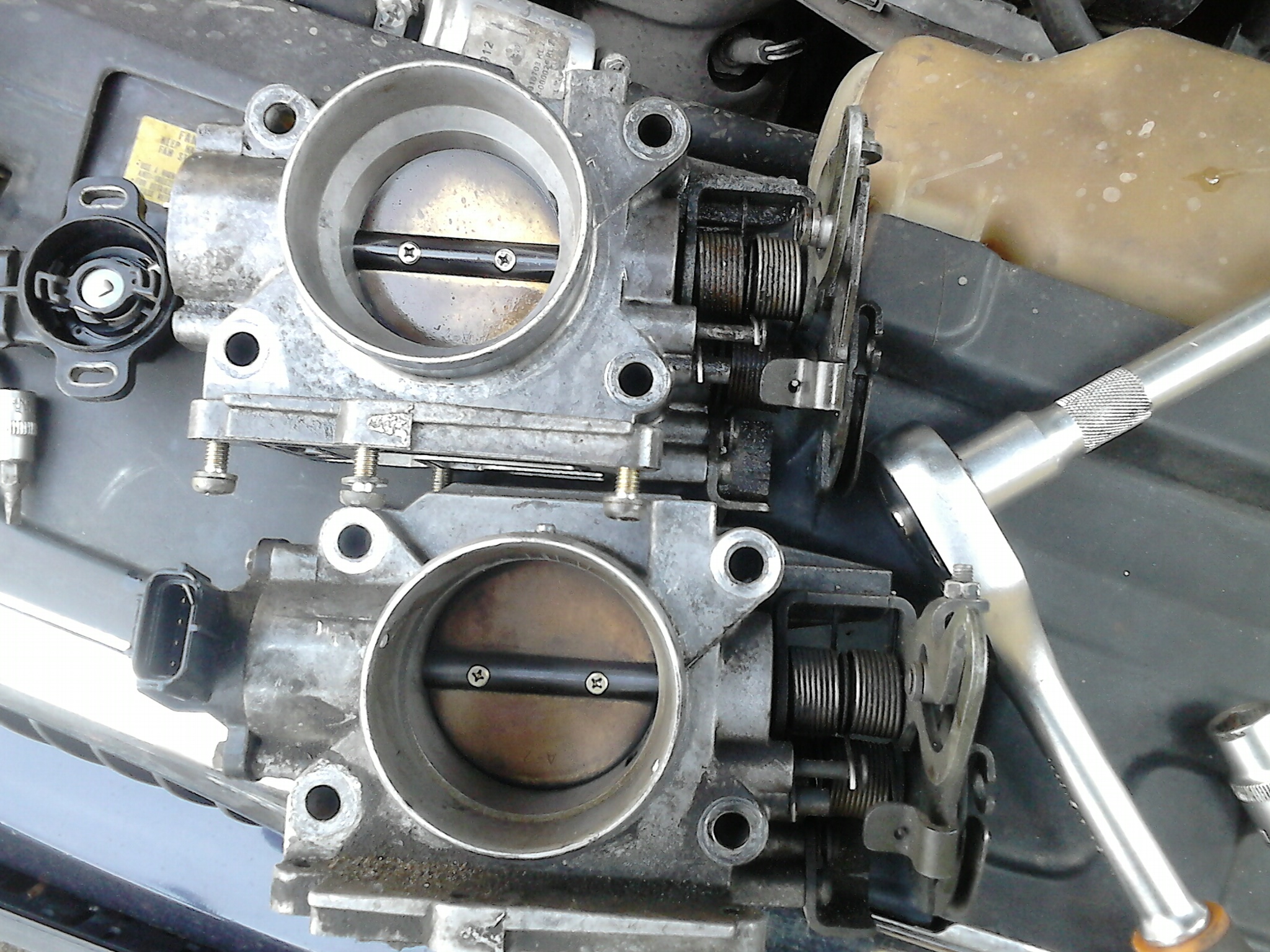 Możliwe że krokowiec/elektrozawór wolnych obrotów jest taki sam w obu przepustnicach, w KF jest mniejsza średnica przelotu niż w KL