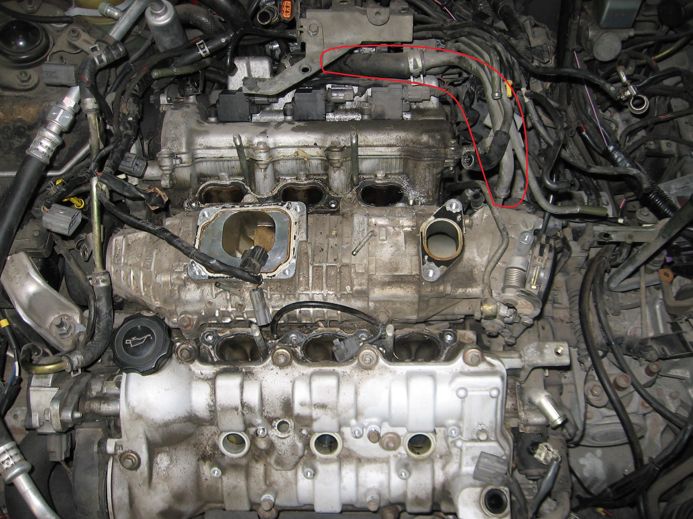 Jak wyżej, jedna z przodu, druga z tyłu. Tylna jest podłączona przed przepustnicą, przednia przez zawór PCV za przepustnicą.