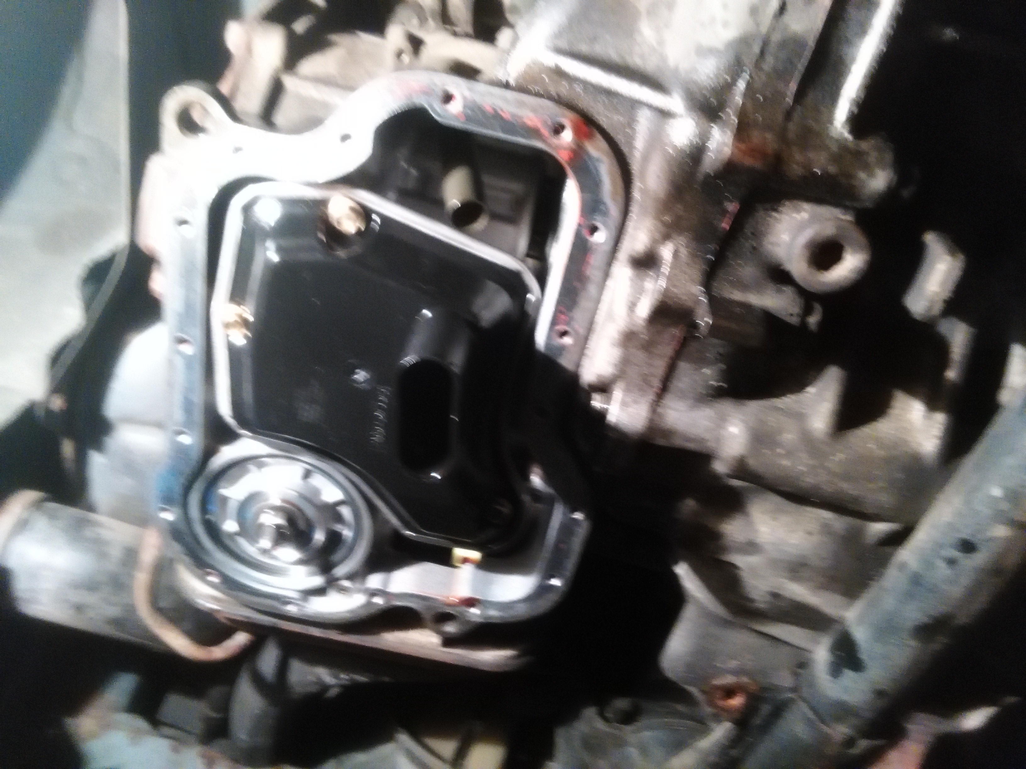 W koncu wzialem sie za wymiane oleju w skrzynce. Zrzucilem miske, wymienilem filtr i tak sie zastanawiam czy ta sruba na imbus to jednak spust oliwy (prawy gorny kwadrat zdjecia)? Jednak jest troche wyzej jak miska.