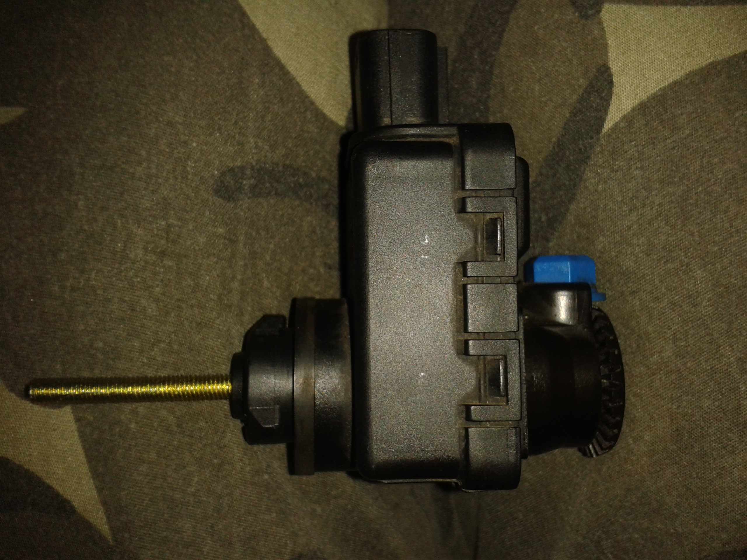 Pozostała naprawa we własnym zakresie. W tym celu należy go wymontować, zaczynając od wypięcia kostki podłączeniowej. Następnie przy pomocy kółka zębatego, (tego pod niebieską nakrętką), wykręcamy, (w lewo), z lampy, "broń boże" nie ciągnąć, bo można urwać zaczep w lampie i będzie <dupa>.