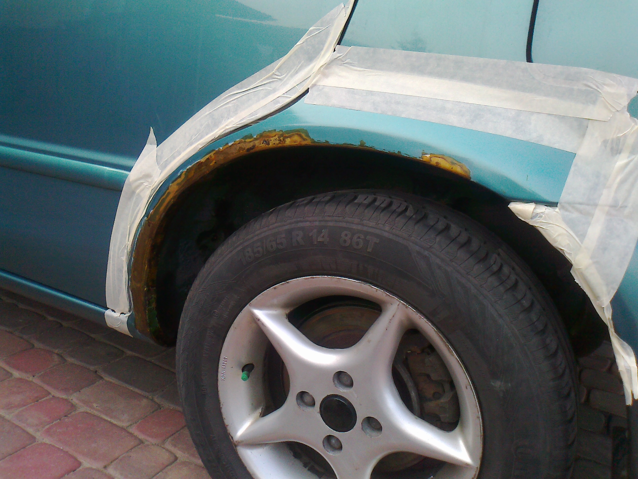 Jeśli się korozja już rozpocznie to niczym jej nie zatrzymasz, możesz ten proces jedynie spowolnić. Wiadomo blacharz i lakiernik chcą zarobić i to w granicach 2000 tys za obie strony błotników. Mnie nie za bardzo na to stać jak narazie, poza tym nie ma takiej tragedii jak czytałem u kolegów na forum i oglądając zdjęcia dziur na wylot. Ja staram się systematycznie usuwać rdzę tam gdzie ona się pojawia. W tym roku robiłem jak narazie dwa tylne błotniki i lewą stronę podszybia, ponieważ tam było najgorzej. Wszystko robiłem środkiem Fertan do odrdzewiania powierzchni, do tego użyłem środka do profili zamkniętych Valvoline, pod spodem zamieszczam małą fotorelację może komuś się przyda aby zrobić to samemu żeby to jakoś wyglądało- oczywiście jeśli rdza jest w małych ogniskach i nie ma dziur..