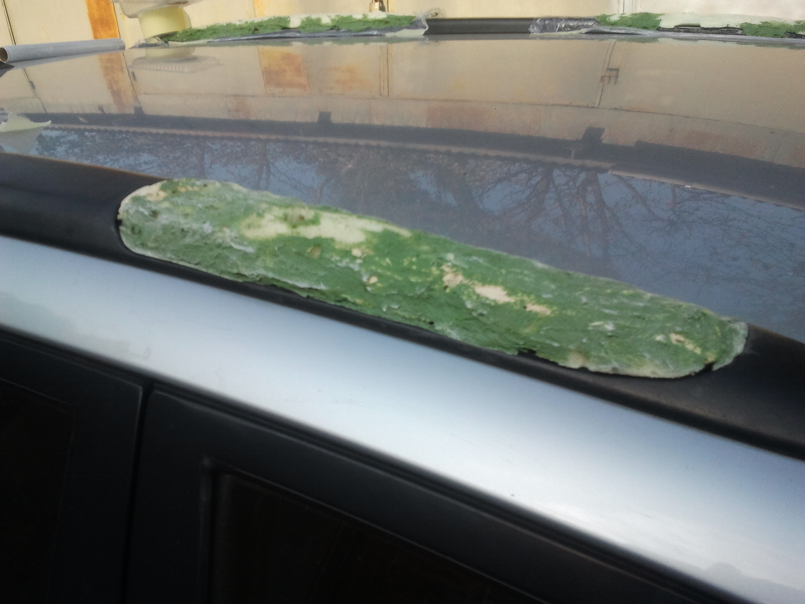 Zacząłem od przykrycia zmoczonych wodą relingów folią śniadaniową. Na to pianka montażowa a po jednej dobie wycinanie na samochodzie korpusów zaślepek. Dość szybko należało użyć szpachli w celu usztywnienia pianki oraz wypełnienia szczelin. Efekt na zdjęciu.