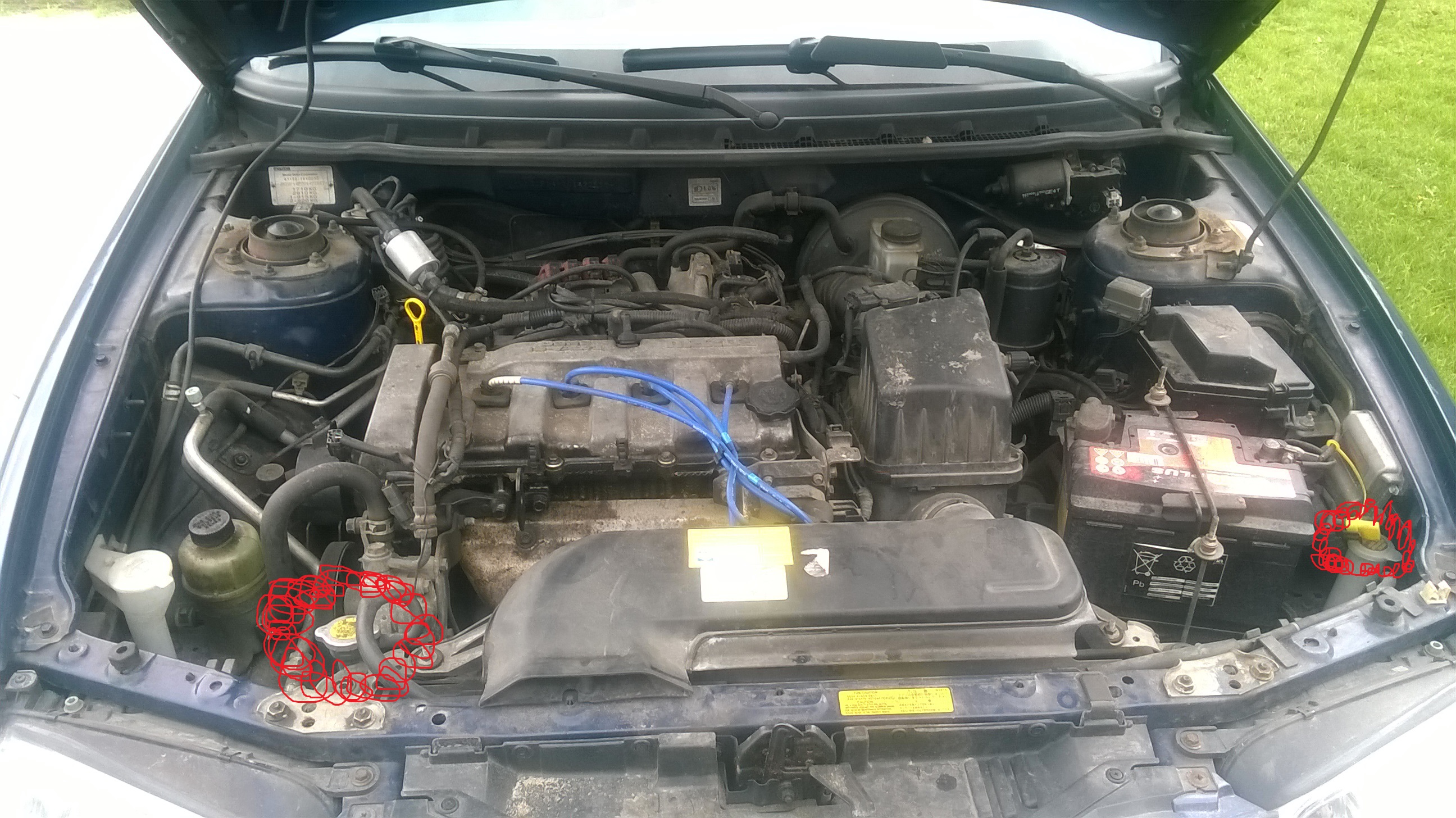 Korek niższy ma być przy silniku a ten wyższy przy chłodnicy.