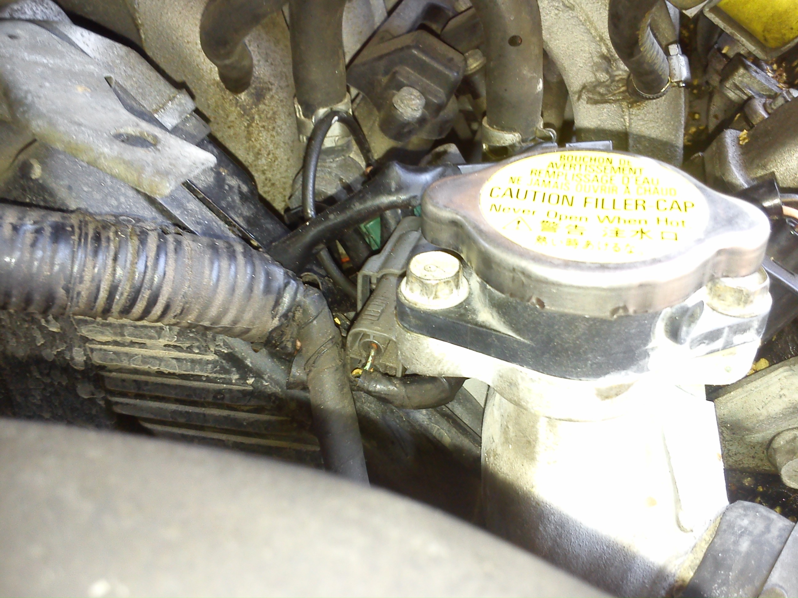 W rezultacie przez nieszczelność musiał się zapowietrzać i wywalało mi wodę w tym trójniku między kolektorem dolotowym a termostatem: