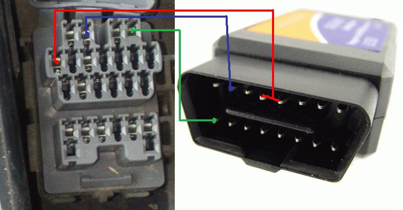 Wg zdjęcia Twoje gniazdo diagnostyczne zawiera pin (MEN) do komunikacji w standardzie ISO9141jaki i również pin do komunikacji w standardzie J1850PWM (Bus + line).Nie spotkałem się wcześniej z takim rozkładem pinów, gdyż te ,które widziałem miały piny tylko ISO lub tylko J1850PWM .