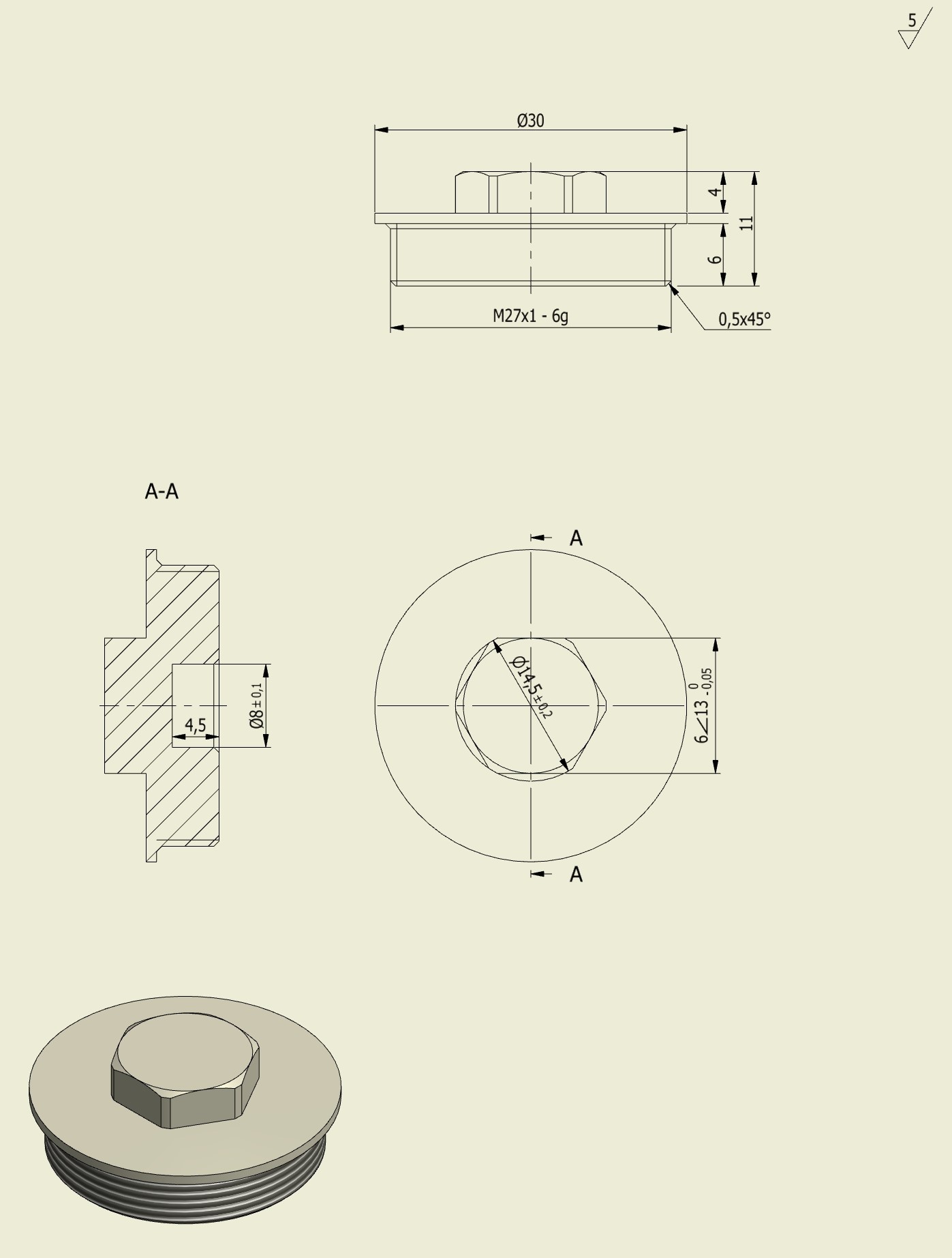 Dla potomnych podaję wymiary korka, który dorobiłem (gwint M27x1 musi być nacięty na trochę mniejszej średnicy 26,7 bo na standardowej nie chce się wkręcić):