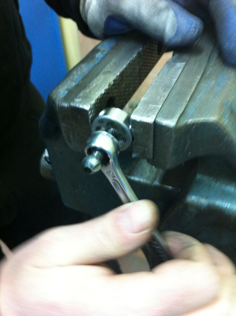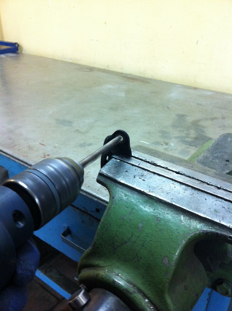 16. W zaczepie które wykręciliśmy w punkcie 2 rozwiercamy otwór gdyż ten fabryczny okazał się za mały.