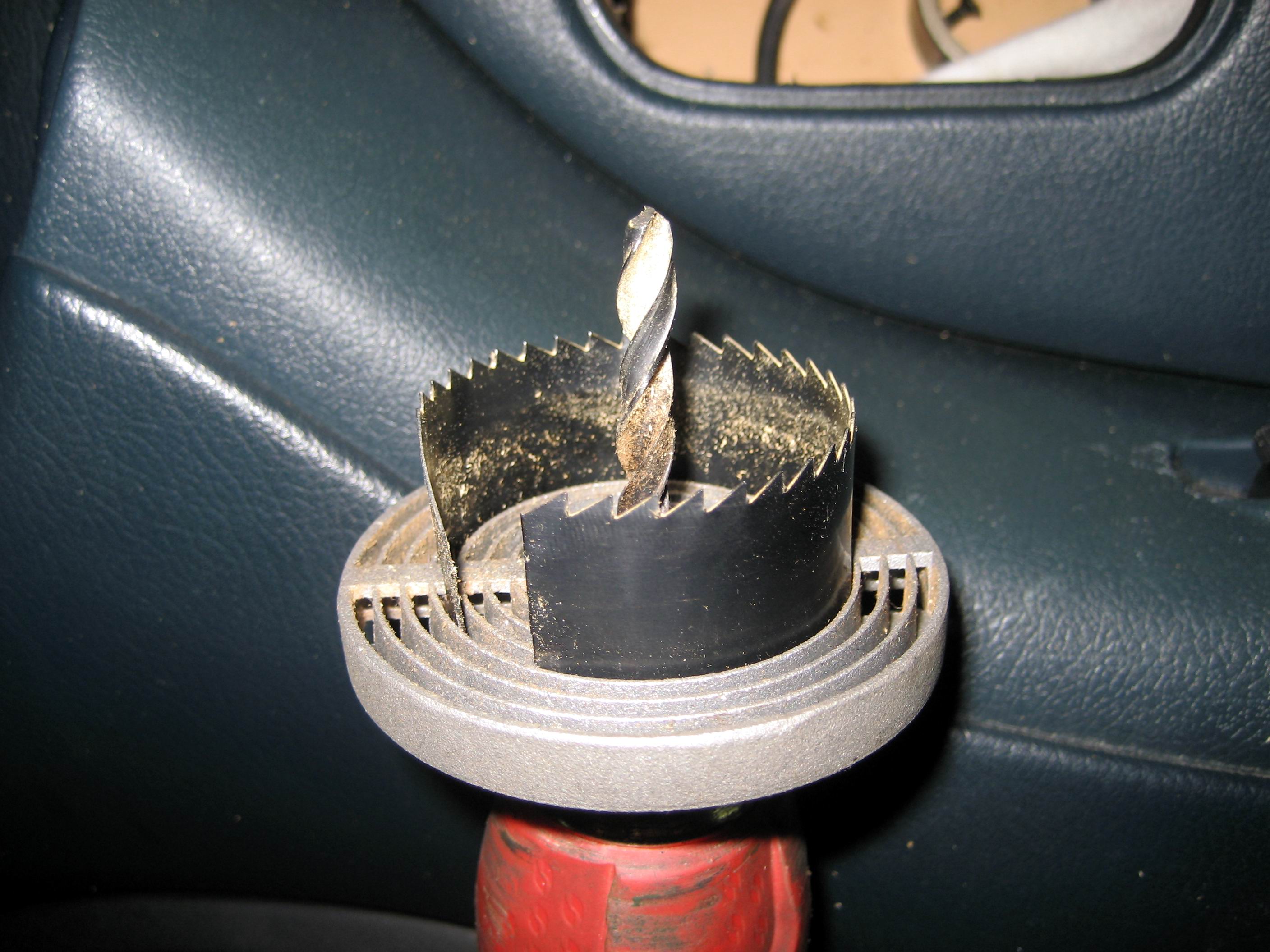 Wiercimy otwór centrujący a potem lekko z wyzuciem bez przykładania dużej siły wiercimy otwór, pod głośnik
