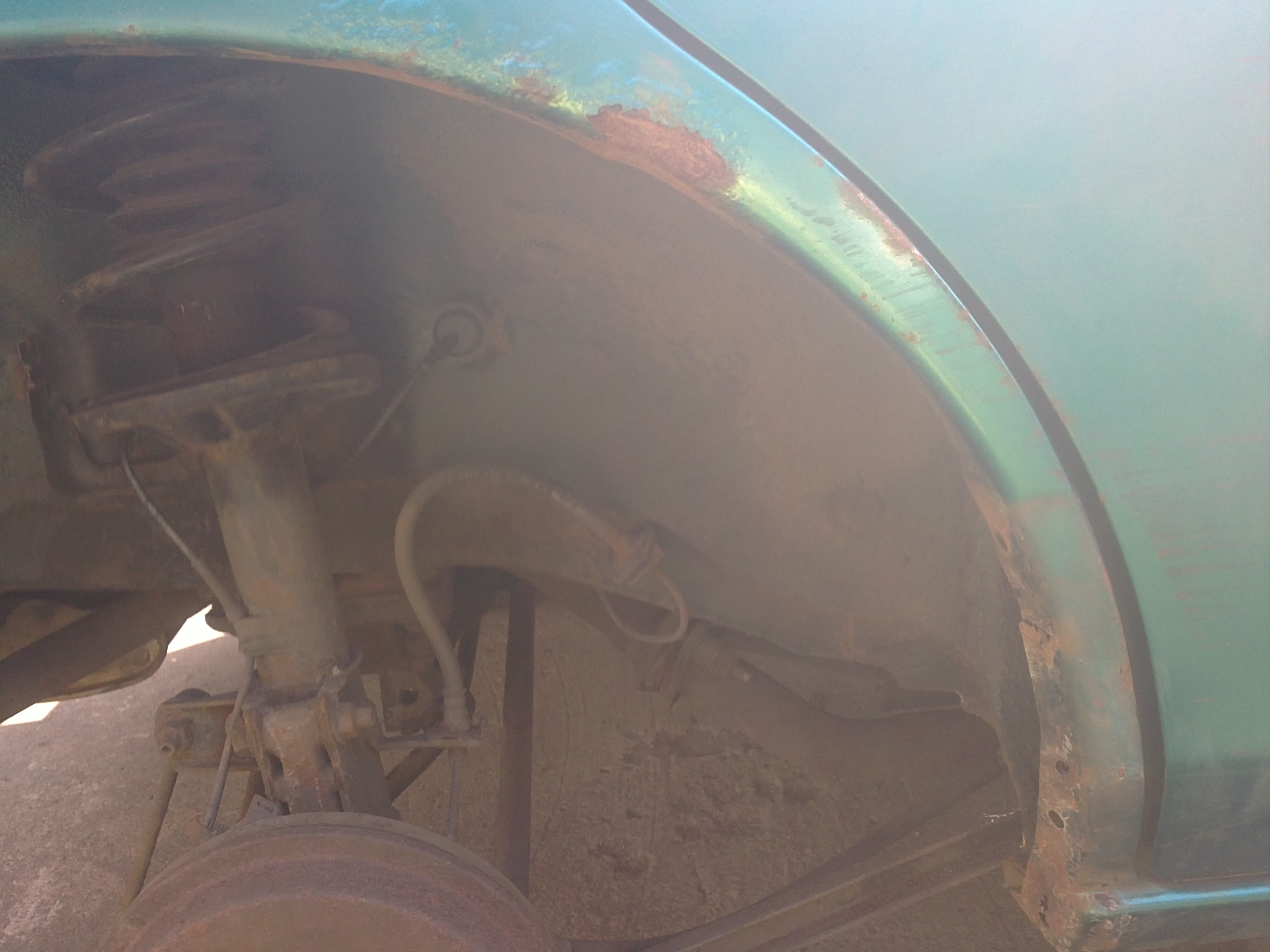 Widzę też, że pod kielichami robi się rdzawo. Trzeba prawdopodobnie odkręcić amortyzatory i pomalować. :) Żeby czasem amortyzator nie znalazł się w samochodzie w przeciągu dwóch lat.