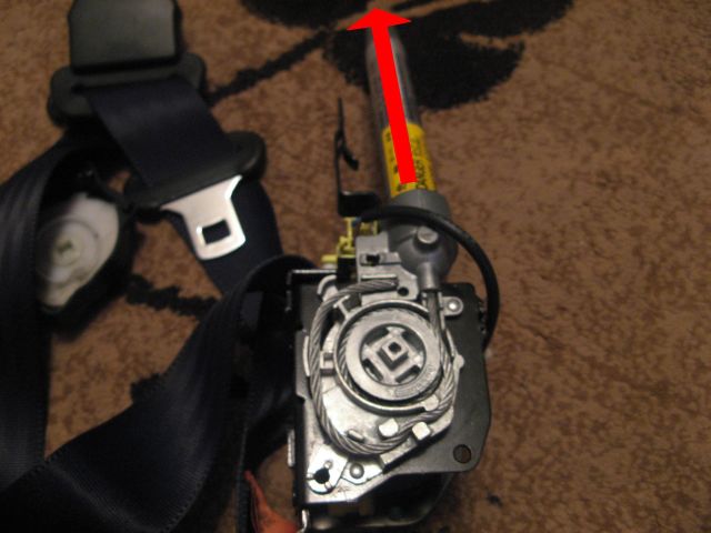 Jeżeli pas jest dobry (napinacz niewystrzelony) to metalowa linka znajduje się na dnie cylinderka