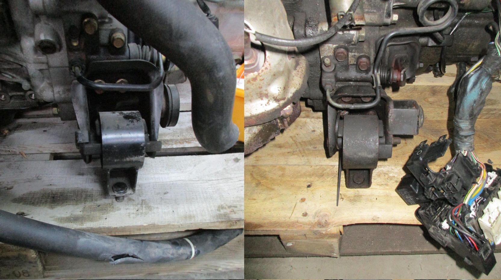 Przednia poduszka jest nieco inna od tej w nowym i przede wszystkim na grubszych śrubach montażowych;/ Tylna z kolei jest większa, i rozstaw otworów większy... Nie wiem teraz czy przerabiać te z 2,5 czy montować na poduchach z KF'a (nowych), które są na pewno słabsze...