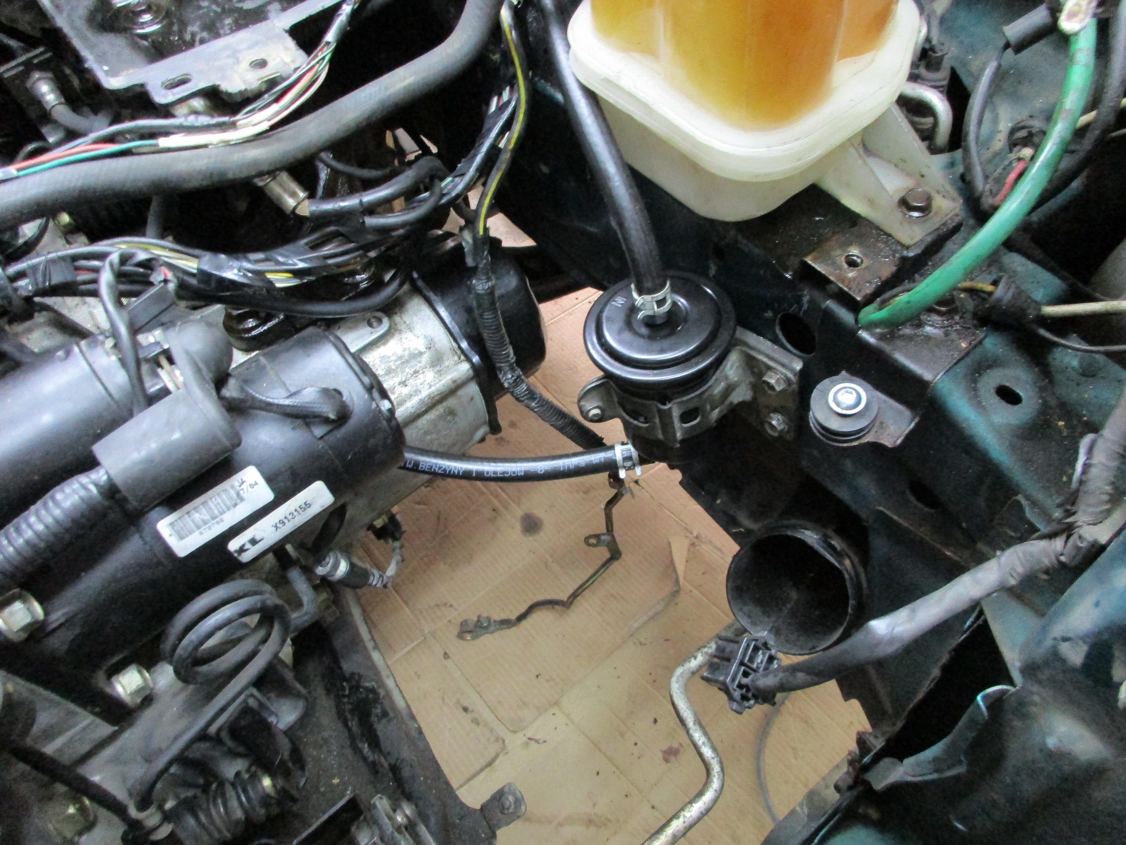 Rurkę od serwa musiałem ogarnąć z osobnym zaworkiem zwrotnym, bo nigdzie nie szło dostać u mnie oryginału z KL'a. Oryginalna z KF'a była za krótka więc zastosowałem sobie zapasowy wężyk ze zbiorniczka wyrównawczego od płynu chłodniczego, okazał się idealnie pasować;]