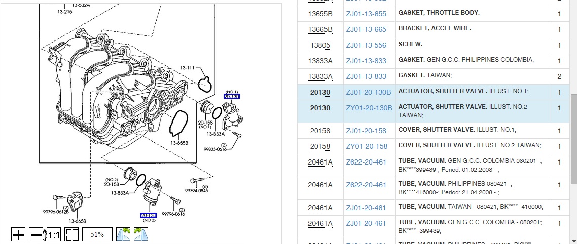 czujnik podciśnienia w dolocie.. są dwa, jeden przed vris-em i drugi za – No. ZJ01-20-130B