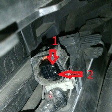 1. Podłączyłem zrobiony kabelek (0,5mm) ze specjalną-zarobioną końcówka i włożyłem go do górnego, prawego pinu kostki znajdującej się za chłodnicą silnika. (Wchodzi bez najmniejszego problemu, ale moim zdaniem należy zwrócić uwagę żeby wepchnąć pomiędzy elementy ze stali (nie pomiędzy stal a plastik).