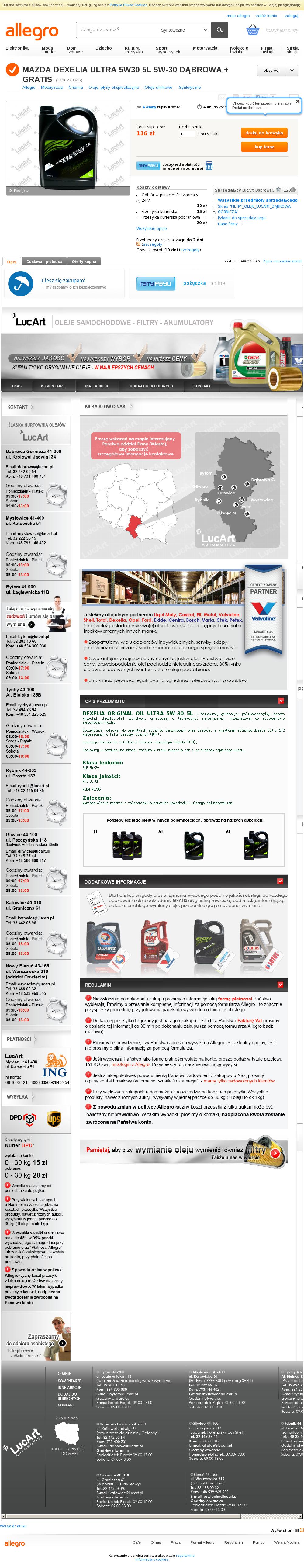 Ja zamówiłem z tego źródła http://allegro.pl/mazda-dexelia-ultra-5w30-5l-5w-30-dabrowa-gratis-i3406278346.html :) Wymiana w najbliższy weekend zobaczymy jak będzie <oczy>