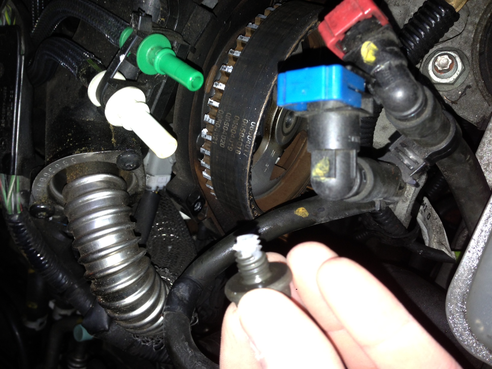 po dzisejrzym zdiecu obudowy okazalo sie ze jest zerwana sruba na kole walka rozrzadu