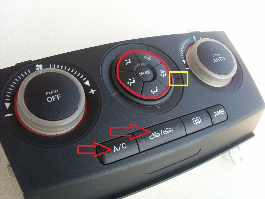 Forumowicze, rozumiem że te 3 żarówki T5 odpowiadają za te 3 głowne strefy klimatronika, regulacja nawiewu, kierunek nawiewu oraz temp. A jak się dostać do podświetlenia A/C i systemu obiegu powietrza ? (czerwone strzałki na zapożyczonym screenie:–). I jakie żarówki tam wchodzą??