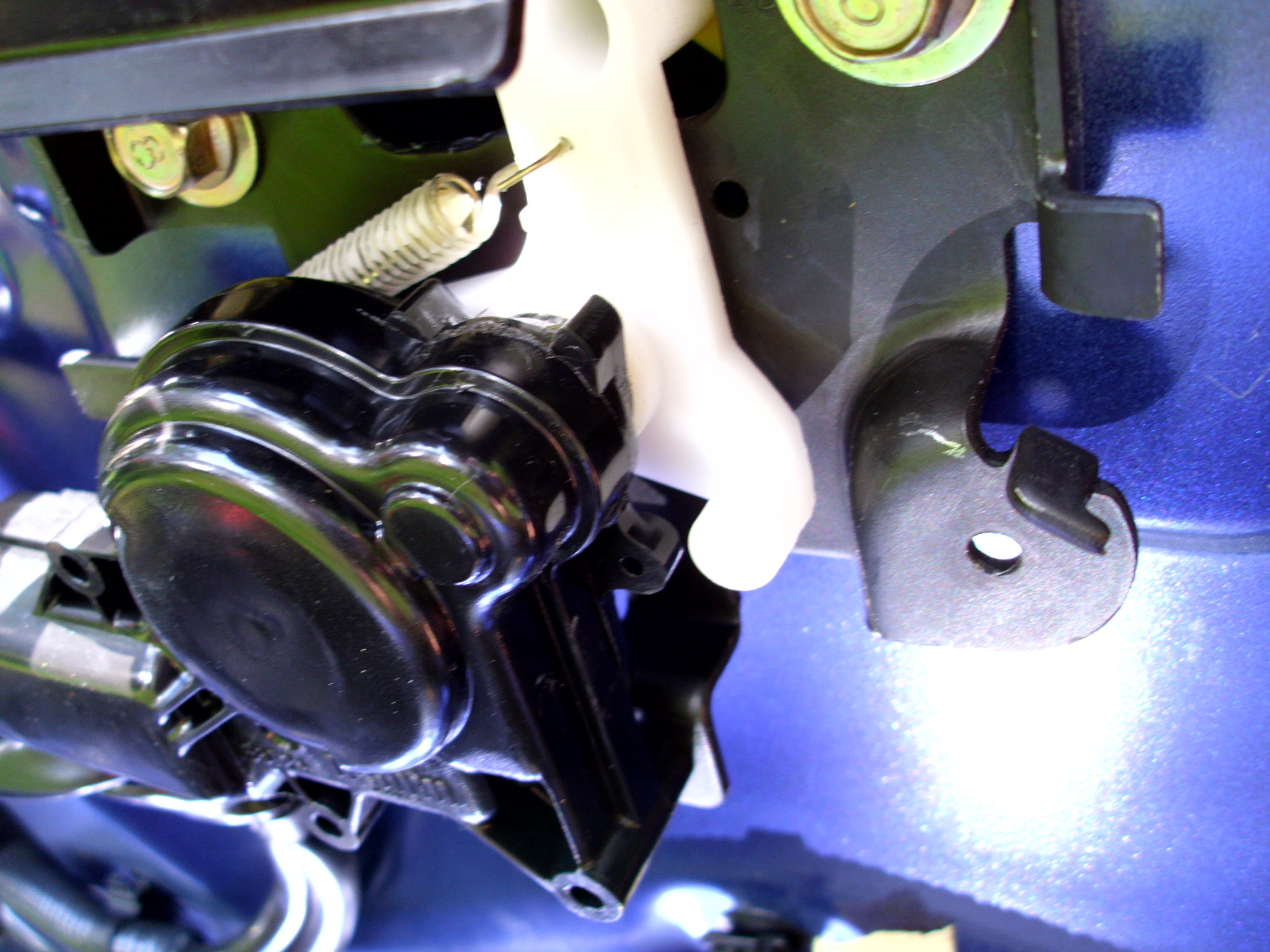 Drugi pojawił się już w miejscu, gdzie po wciśnięciu bębenka, coś dotyka mały guziczek, który uruchamia otwieranie zamka. Niestety coś się wyrobiło i guziczek nie jest dociskany przy wciskaniu bębenka. Kapnęliśmy tam kleju na gorąco i daliśmy trochę smaru. Całość trzeba było jeszcze mocno ścisnąć zaciskiem taśmowym. Póki co działa.