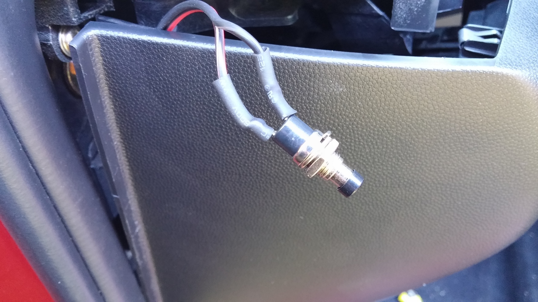 9. Wiercimy dziurę, łączymy kabel z przełącznikiem i sprawdzamy czy po wciśnięciu klapa się otwiera. Jeśli tak, możemy zamontować przełącznik w miejscu, które wybraliśmy.