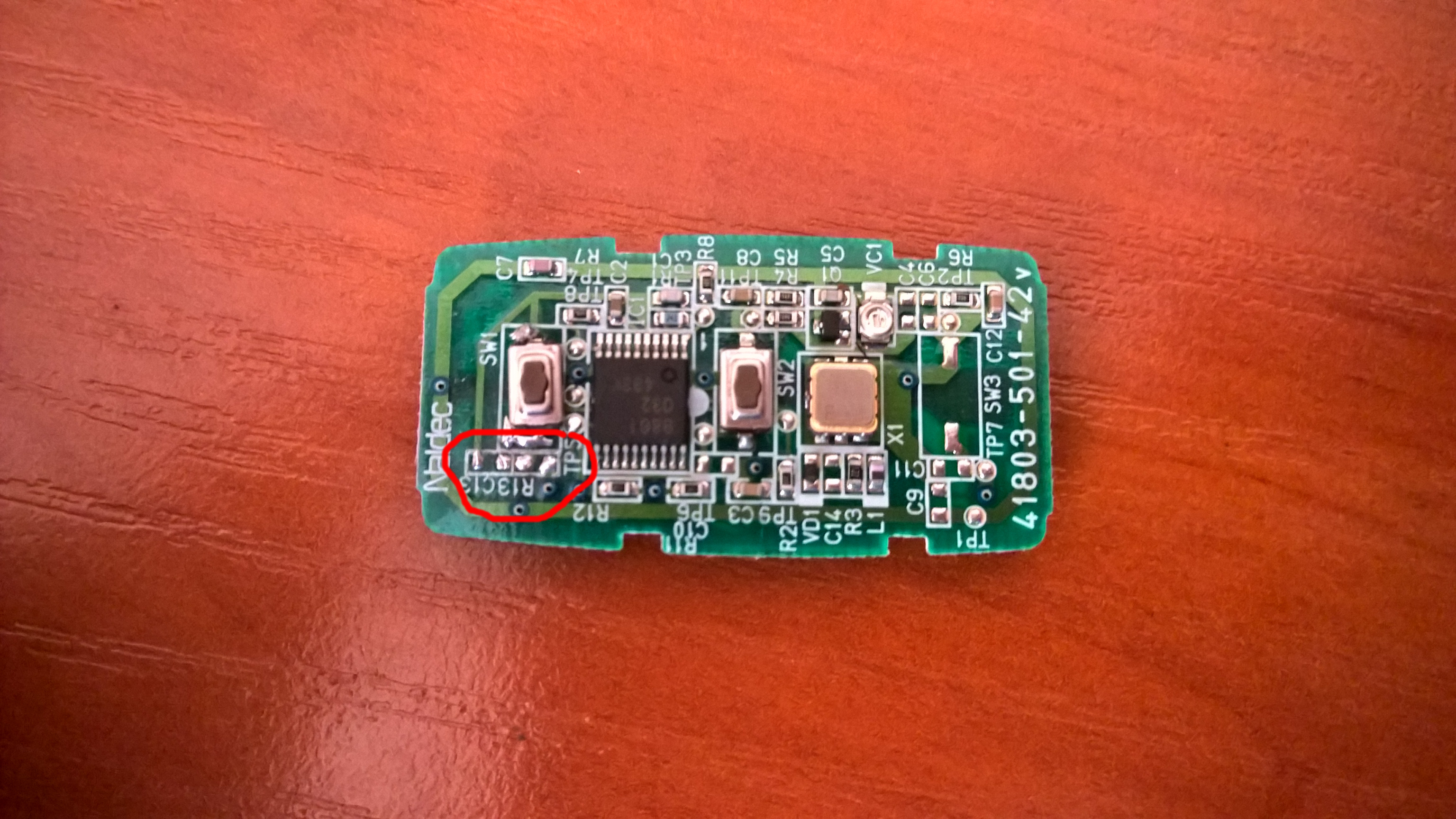 Witam, mam gorąca prośbę. Potrzebuje zdjęcia poglądowego płytki kluczyka centralnego z góry i dołu. Ostatnio odpadł mi włącznik, po lutowaniu niesfornie odlutowałem elemencik zaznaczony na zdjęciu, jakby tego było mało gdzieś się zagubił (spadł i go licho wzięło..